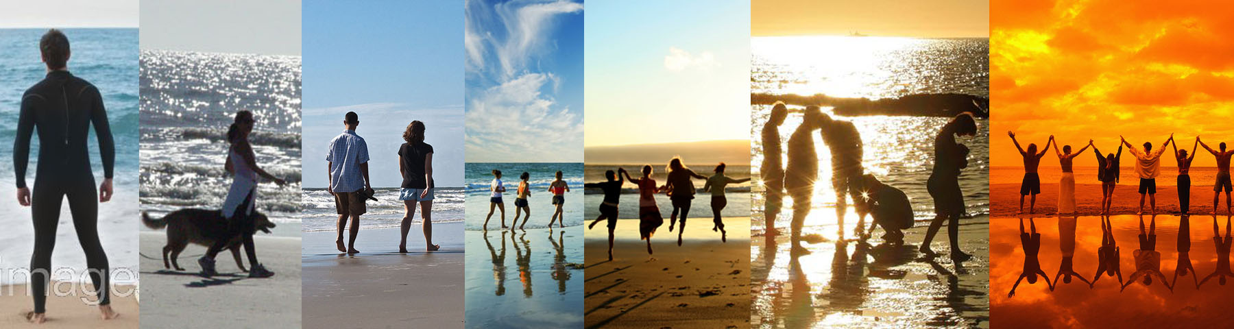 The photos that I found on the internet are all linked by different classification attributions. The first classification is location, they are all taken beside the ocean. The next classification is subject in relation to the viewer, all of the subjects are facing away from the viewer. The third classification is subject in relation to each other, going from left to right the subjects are increasing in number. The picture on the right has only one person, the next has one and a half, the next has two, and so on until there are six people. The last classification for these images is the sly color, the sky color is gradually turning from a dull gray to a blue then to an orange. (see 2nd attachment for larger view)
