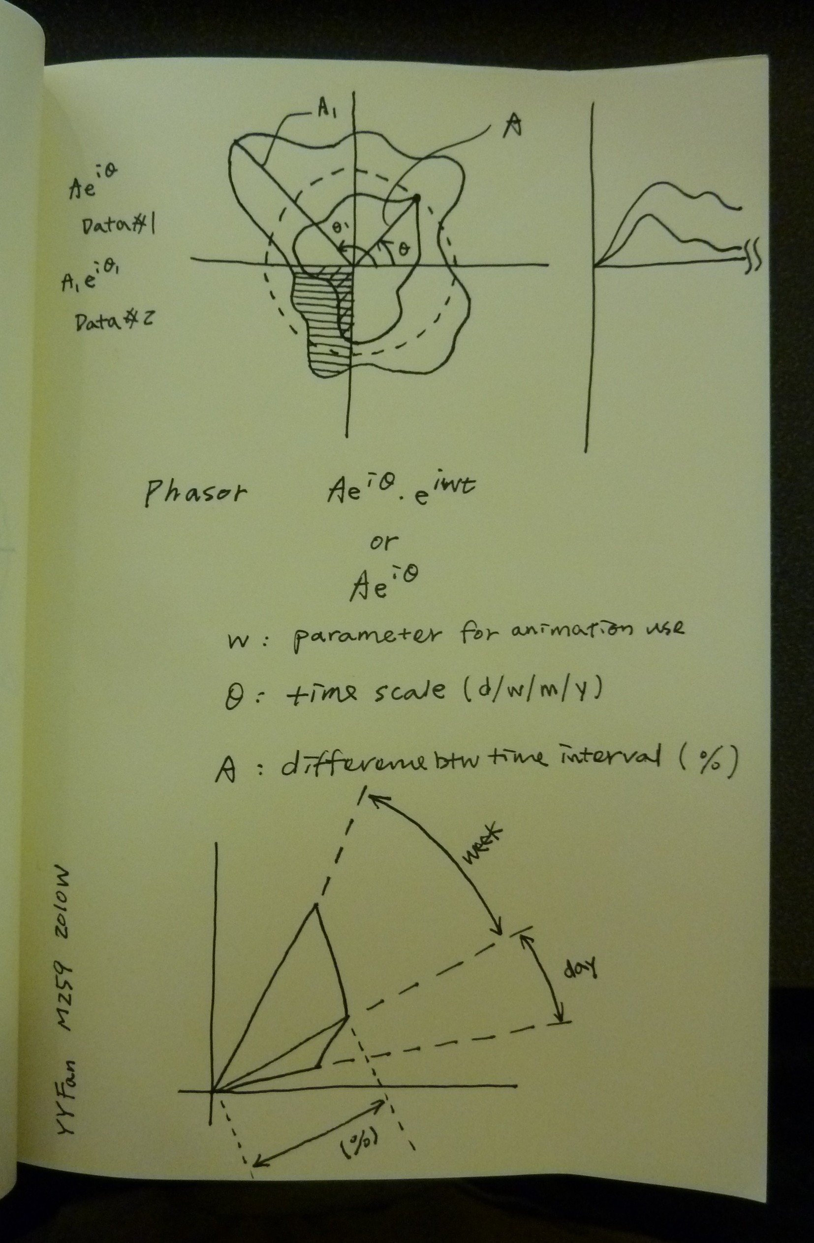 PHASOR is therefore both visual metaphor and technique for visualizing frequency information in this project. Keywords, title, dewey class, check out time, and other statistics in database of Seattle Public Library are of interest for dimension of visual representation. Use of color in visualizing correlation between datasets is also of interest.