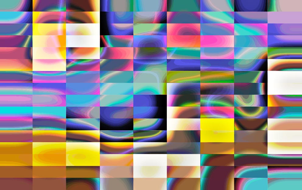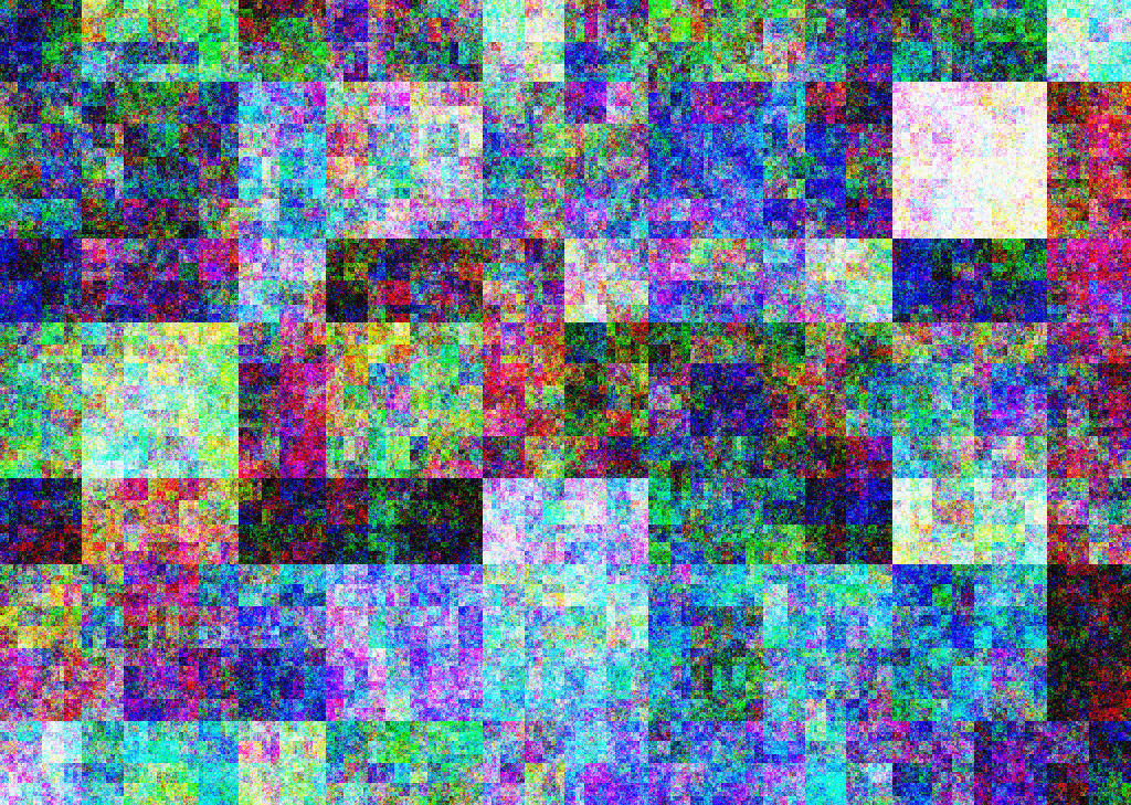 - 1. Reduce image width to 10px (constrain proportions; nearest neighbor resampling); 2. Add 15% noise (gaussian, chromatic); 3. enlarge image width to 24px (constrain proportions; nearest neighbor resampling); 4. add noise with same settings, repeat process at these widths, adding the same noise each time: 52px, 108px, 246px, 513px, 1024px