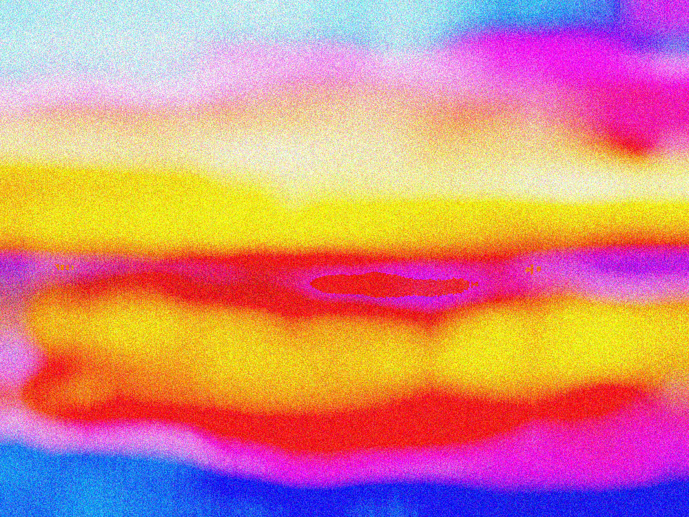 1. Reduce image width to 10px (constrain proportions; nearest neighbor resampling); 2. Add 15% noise (gaussian, chromatic); 3. enlarge image width to 24px (constrain proportions; nearest neighbor resampling); 4. add noise with same settings, repeat process at these widths, adding the same noise each time: 52px, 108px, 246px, 513px, 1024px