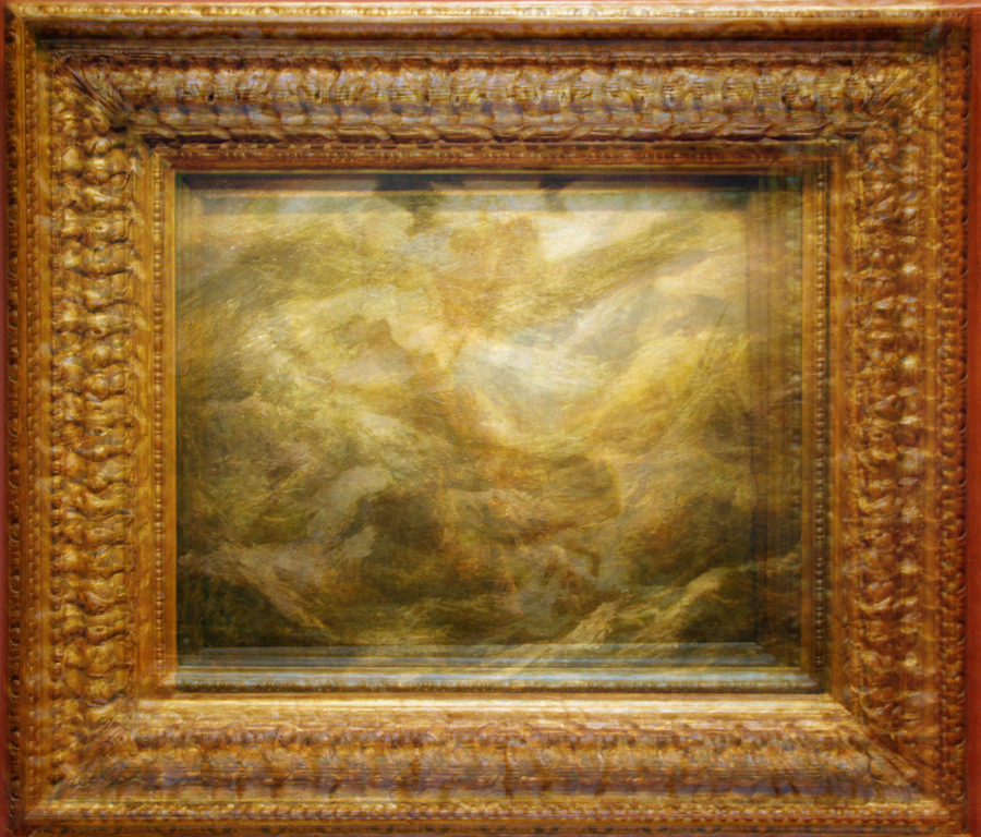 I began with 20 photographs of French and American paintings I took at the National Gallery. These included landscape, still life and portrait paintings by artists including Gauguin, Corot, Vuillard, Hartley and Ryder. I chose 20 paintings with different subjects, but similar external features: landscape orientation, similar proportions, and frames visible in the photograph. I cropped them to be the same dimensions and lined the images up at the upper left corner for blending.