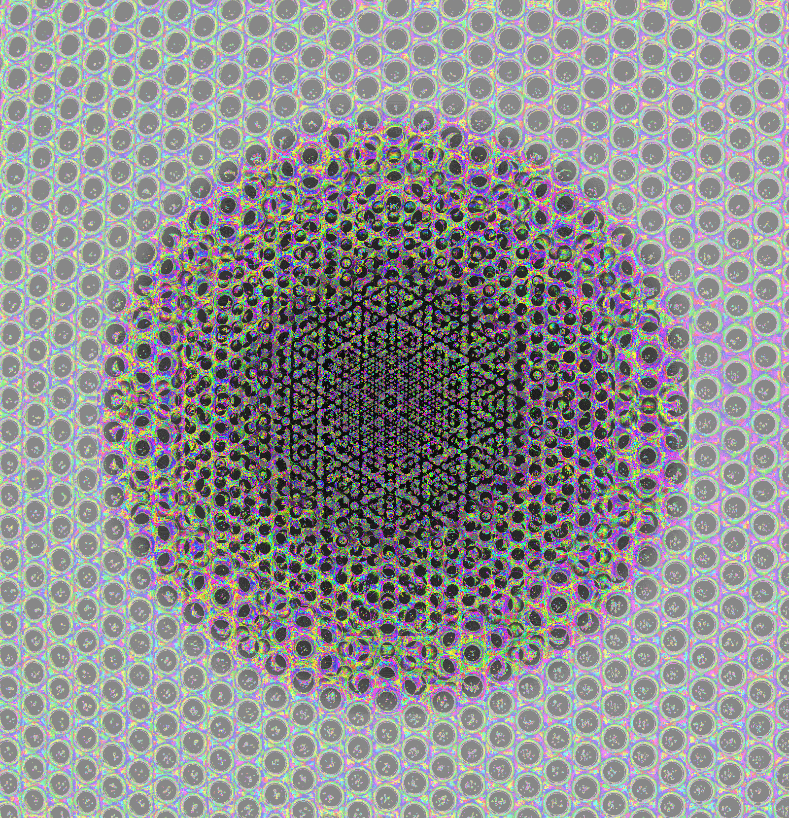 There are many different layering strategies going on, I tried putting them all in a clump on top of each other at first, but it wasn’t quite right aesthetically, so I ended up sectioning them off into little sub-groups. There is a section on the upper right where I grouped all the old movie posters of robots carrying women like damsels, either helplessly dangling or being saved, and lined up all the eyes of the dangling women, and they all lined up exactly. I’m pretty sure there was just “dangling woman” template they used for every poster ever. In the middle, there are larger, Terminator-like robots all on top of each other- underneath them is one of the original pictures of Maria from Metropolis in a chair surrounded by halos of electricity. And somehow the image of Maria disappeared in the opacity, but one of the halos managed to stay visible, and lined itself up poignantly over the head of a giant cylon.
