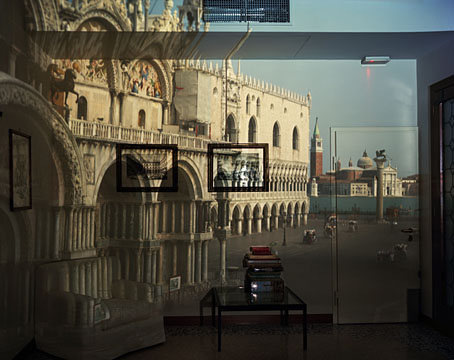 “I made my first picture using camera obsura techniques in my darkened living room in1991. In setting a room to make this kind of photograph, I cover all windows with black plastic in order to achieve total darkness. Then, I cut a small hole in the material I use to cover the windows. This allows an inverted image of the view outside to flood onto the walls of the room. I would focus my large-format camera on the incoming image on the wall and expose the film. In the beginning, the exposures took five to ten hours. Over time, this project has taken me from my living room to all sorts of interiors around the world.” His views range from brazen New York City panoramas to warm Italian vistas.