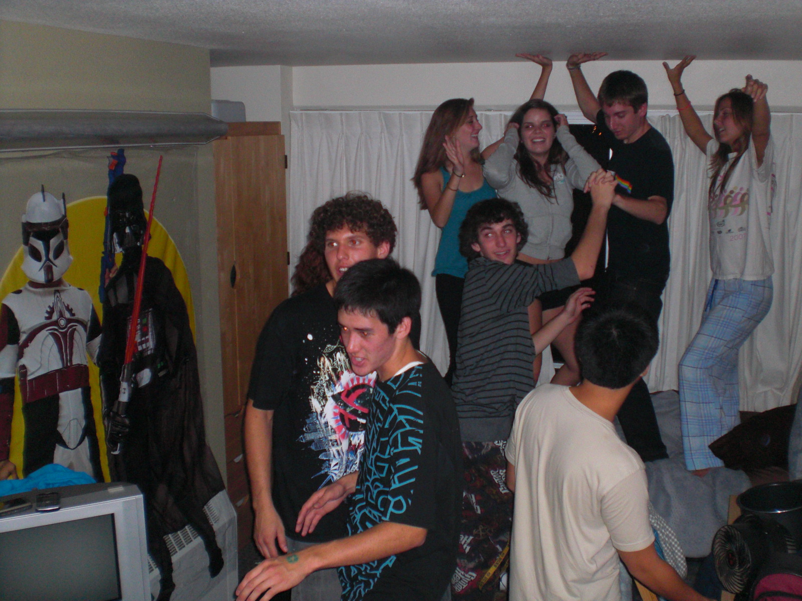 The next image displays a scene from a party in the freshman dorms. With regards to the linguistical examination of the image, there are no blatant forms of text that seem to stand out or promote anything the image signifies. As we examine the image closer, we look into the denotated messages of the image as well at the rhetorical. The body language of each individual in the image seem to express, as similar to the messages of the first ad, sexual appeal, happiness, excitement, and a sense of the unknown. Each figure in the image seems to be unsure of their surroundings, giving the image an overall exciting feeling and mystery.