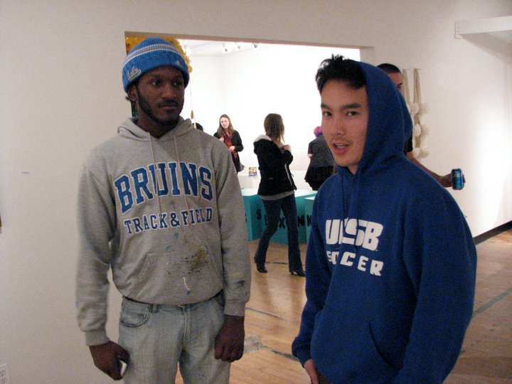 The casual snapshot I chose was just a photo I found on Facebook. It depicts two young males in the foreground and some people walking around in the background, one of which is holding a blue can. The person on the right (me) is the only one that is acknowledging the camera in a somewhat surprised fashion. The only linguistic messages seen here are the words written the figures clothing. The person on the left wears a sweatshirt that reads, “Bruins Track & Field” and is also wearing a beanie that reads, “Ucla.” The person on the right is wearing a sweatshirt that reads, “UCSB Soccer” although the “C” in UCSB and Soccer are not entirely legible. The picture takes place somewhere inside a predominately white walled building with wooden floors. The coded messages that can be read in this image is that the two guys in the foreground are caught in some kind of awkward social situation since they are wearing clothing that represent two different schools and two different sports. Also the viewer may also assume that this photography is taking place in some social situation by assuming that the blue can one of the figures in the background is holding is a can of beer, specifically bud light.