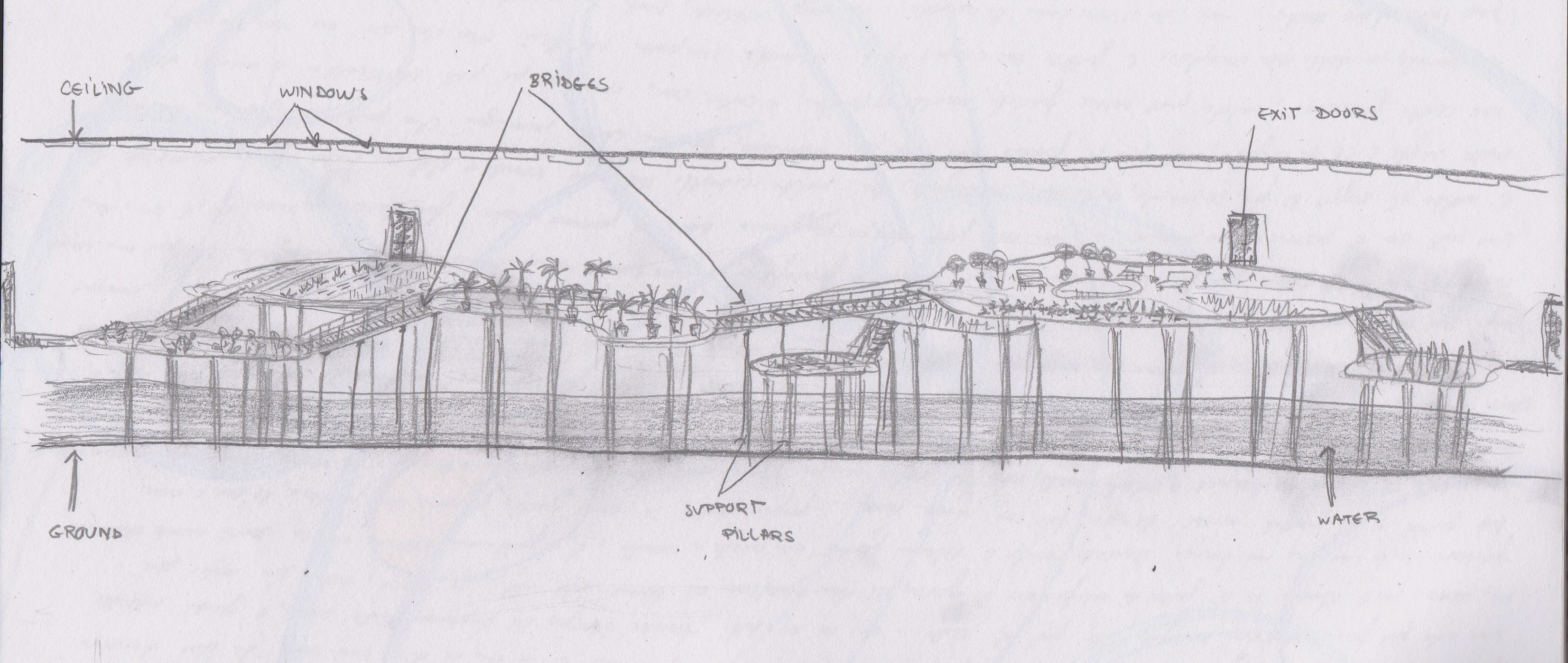 The project will be an interactive installation in a gallery space about the size of the Turbine Hall at the Tate Modern in London. The room will be flooded and there will be some island structures constructed and connected by bridges and accessed from all the gallery doors. The visitors will be given a rain coat at the entrance, this coat has 3D motion capture reflectors inside that will activate a rain producing laser as people move around. The islands have a established rain intensity map , so when people walk in a certain area a cloud will form above them and it will start to rain. Some areas will only activate the rain if people jump, walk very slow, run, stand. The rain will be watering the plants on the islands.
