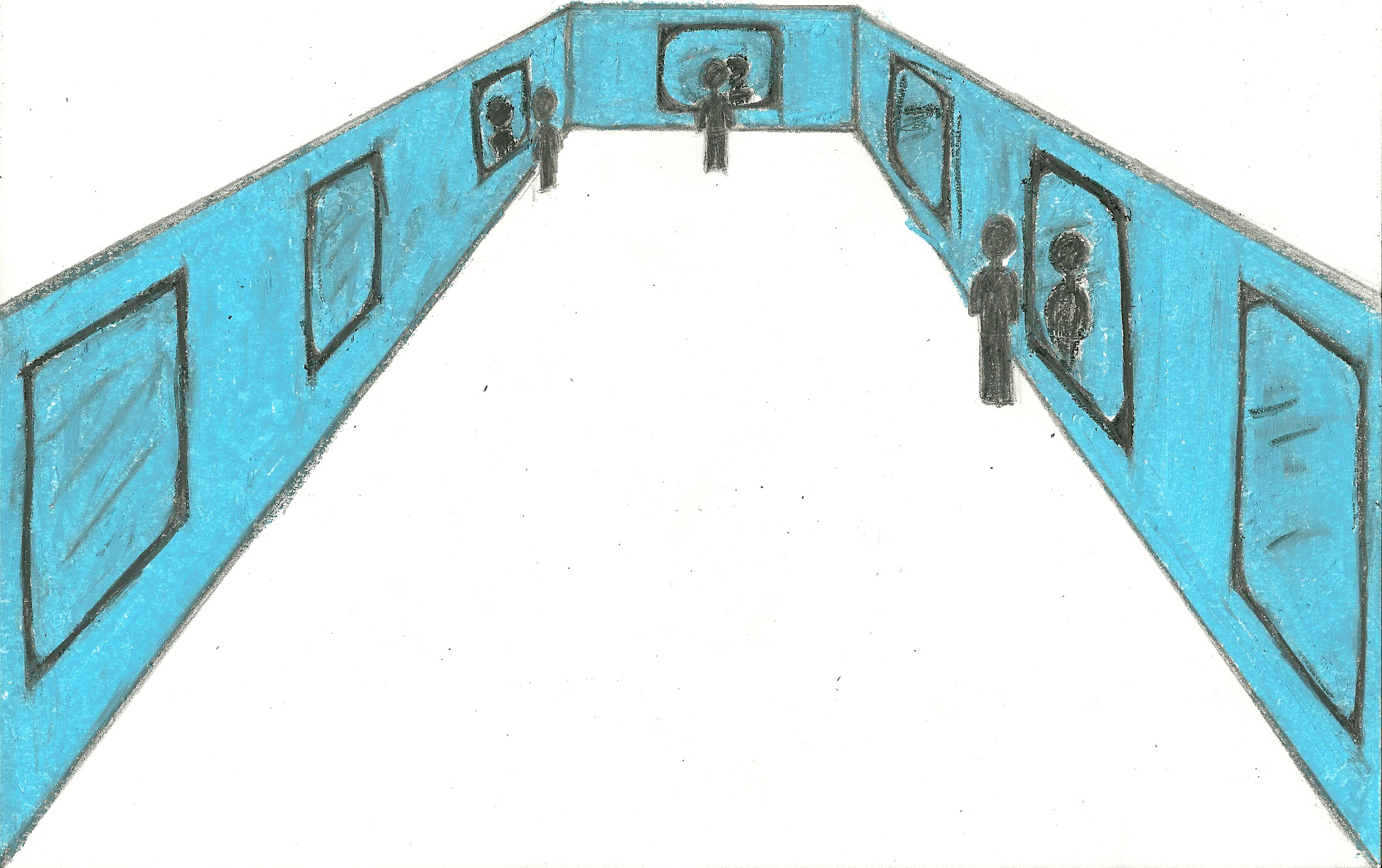 The installation I’m proposing takes the form of a well in the middle of a gallery room. The participant look the well and sees they’re reflection clearly. As the participant leans in more, their image becomes less clear as another unknown person’s reflection is layered with their own. By leaning in further, their image completely dissolves, and only the image of that unknown person stares back at them.