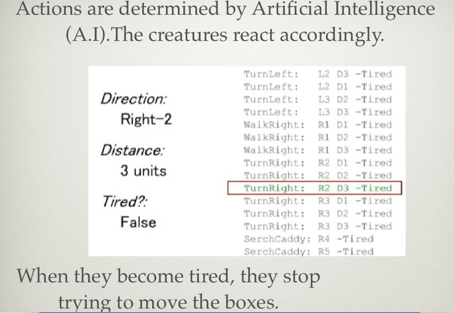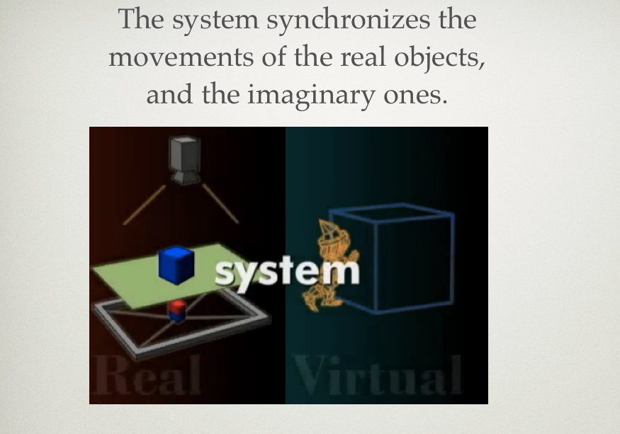 How the interaction takes place is through the real world objects. If you were to push the box, you can feel the force of the imaginary creatures. (haptic technology)