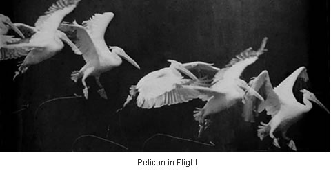 "Marey invented a technique called 'chronotography' that captured the stages of movement on a a single photographic plate, with multiple exposures per second so that the moving figures overlap. In the 1880s, Marey turned his attention to the tricky analysis of bird flight, photographing sequences of herons and cockatoos" (NewScientist).