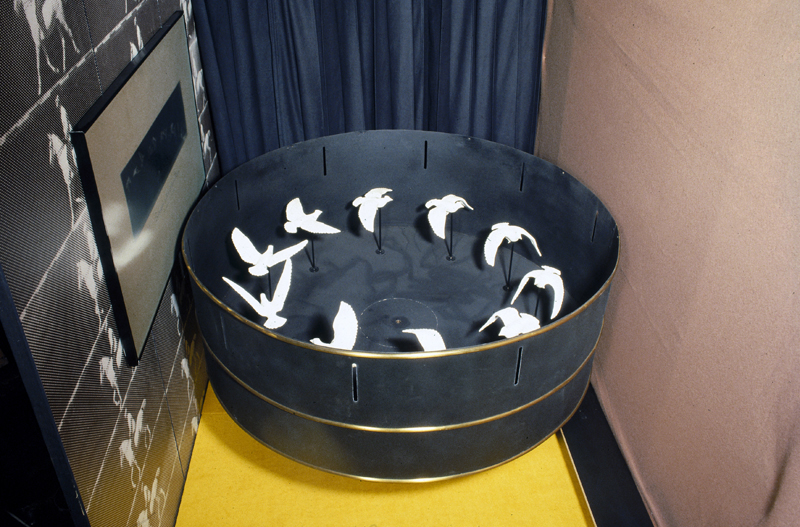 Compared with the movement itself, Marey paid more attention and effort to the force determining the movement. To assist in his understanding of the mechanism of the wing in relation to the movement of air and the effects of air pressure on the wing, Marey wanted to photograph the wing’s movement in three dimensions. In July 1887 he took several picutures from above the bird, which would then be coordinated with whose he made parallel and perpendicular to the axis of its flight. The applications of this study were extraordinary: from the data furnished by the different sets of photographs he sculpted plaster models of the gull and the pigeon in flight. Each model, slightly smaller than life size, depicted a single phase of the wing as it moved through one complete revolution. He then mounted the sculptures into a very large zoetrope, which can help people view the bird’s flight from various aspects and reconstruct the revolution of its wings, invisible to the naked eye, in three dimensions in slow motion. Marey explained that "From the point of view of the resistance experienced, whether the solid body be in motion in calm air or whether it be immobile in an air animated with movement is indifferent." He thus presented the principle underlying his later smoke machines: air propelled against an unmoving form. He was then tackling a subject that had almost never been studied before: the problem, crucial for aviation, of the air flow around a surface. Sources: