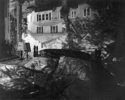 Through the use of a camera obscura, artist Abelardo Morell, is able to transform interior spaces. Morell is able to turn a room into a camera. For example, in his piece, Camera Obscura Image of Houses Across the Street in Our Bedroom, he captures and inverted image of the street onto his bedroom wall.