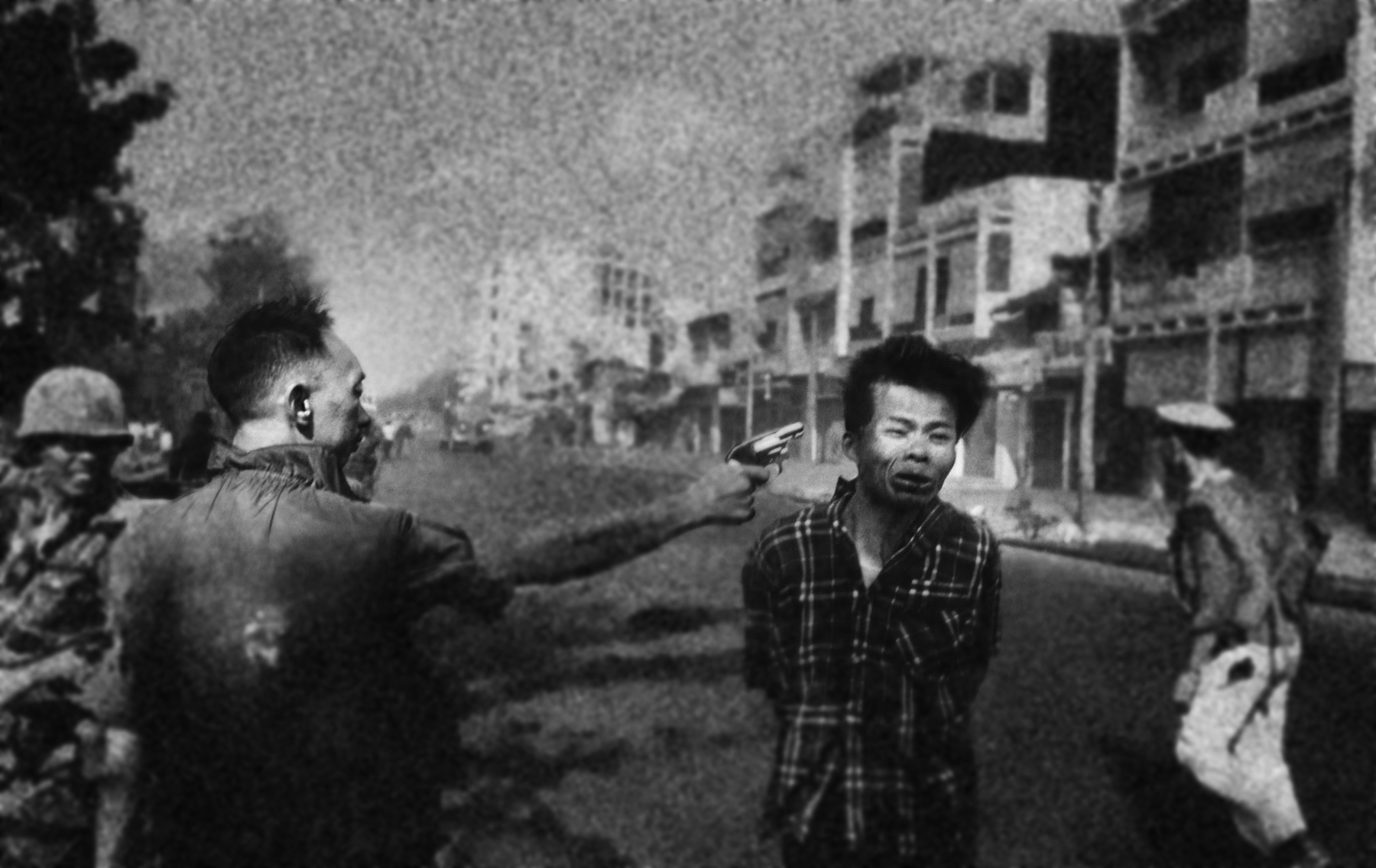 The fourth image to me embodies the theme of this project, which depicts the execution of a Vietcong officer by the then chief of National Police in South Vietnam. While at face value it seems to be a callous act of spite against a helpless man, the photo doesn't tell the whole story: The man being executed was the captain of a Vietcong execution squad responsible for the brutal murder of a South Vietnamese police lieutenant who was close friends with the police chief and his family. This touches on the issue of the existence (or disproving) of objective morality. We like to think of the Adolf Hitlers, Curtis LeMays, and Saddam Husseins of our history as so alien in terms of the scale of their crimes to the point that they become caricatures whose actions were only statistical flukes that it blinds us to the fact that their actions were perfectly justifiable in their eyes, that in dismissing that fact we only tempt fate and allow figures like them to rise again. To this, Robert McNamara, Secretary of Defense under Kennedy and Johnson has said: "Human beings are rational, but rationality has its limits."