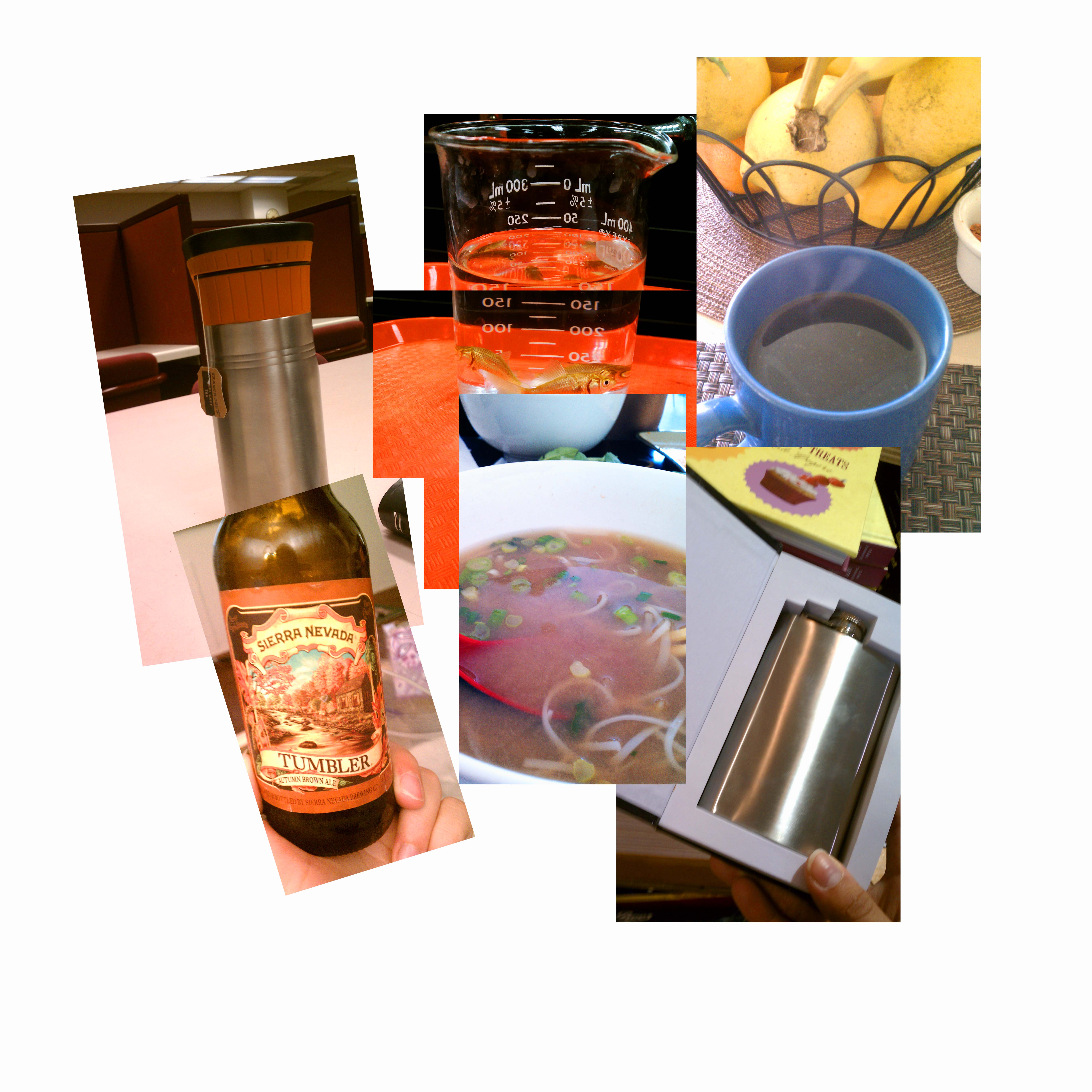 Each photo in this set contains round objects. Each photo in this set involves liquids or liquid containers.