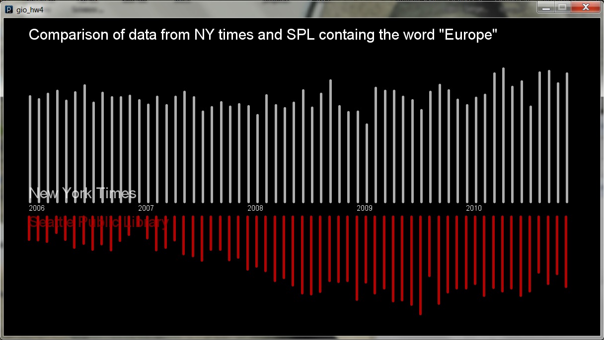 There is some interactivity in the file, when the user mouses over to the right, the SPL data fades out and when they mouse over to the left the NYT data fades out.