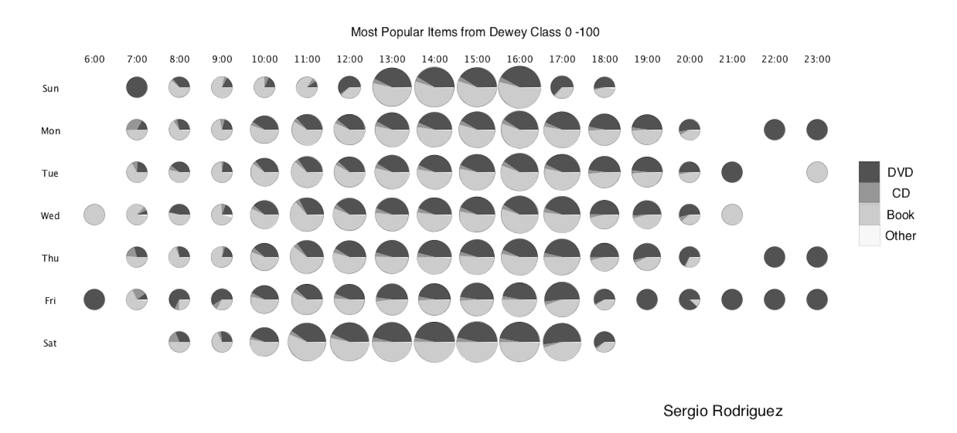 For this visualization, I chose to stay with a simple monochromatic scale (unless you consider Gray-Black a color, in which case this is di-chromatic). I felt that something minimal would best represent the data I showed.