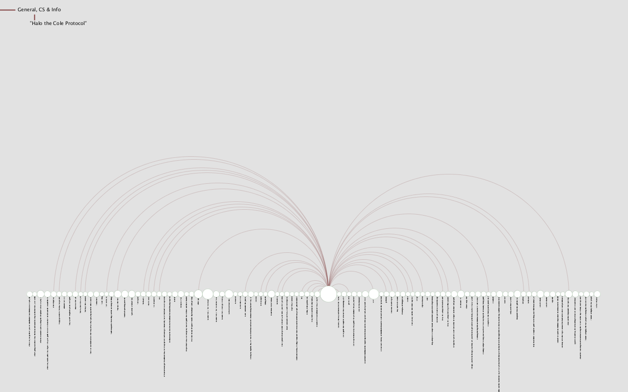 Since it is not as visually obvious to see which book or movie was checked out the most from 2004 - 2014, I made a different visualization. The radius of the circle represents the number of checkouts, bigger circles mean more checkouts.
