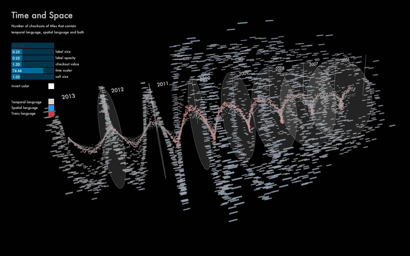 In this assignment I used the same data for the 2D matrix - gothic books checked out in the Seattle Public Library from January 2006 to December 2013. I question if gothic books are more read during rainy months.
