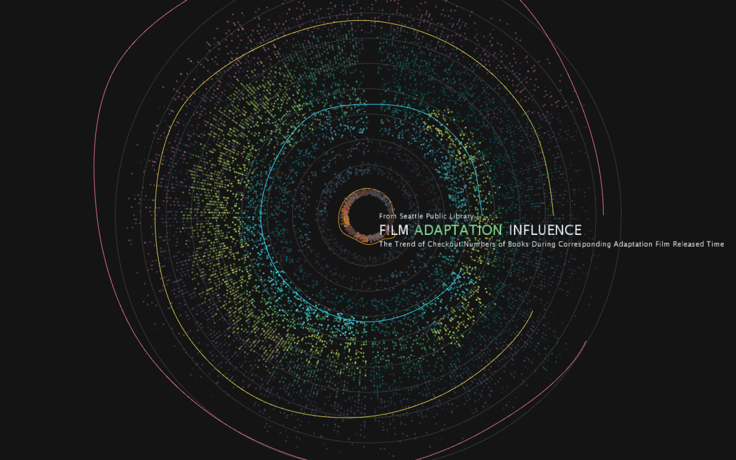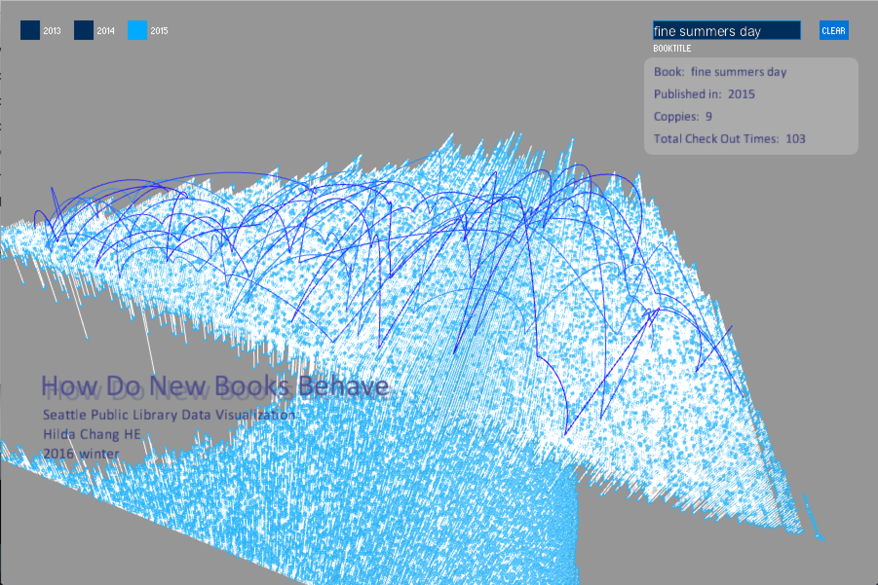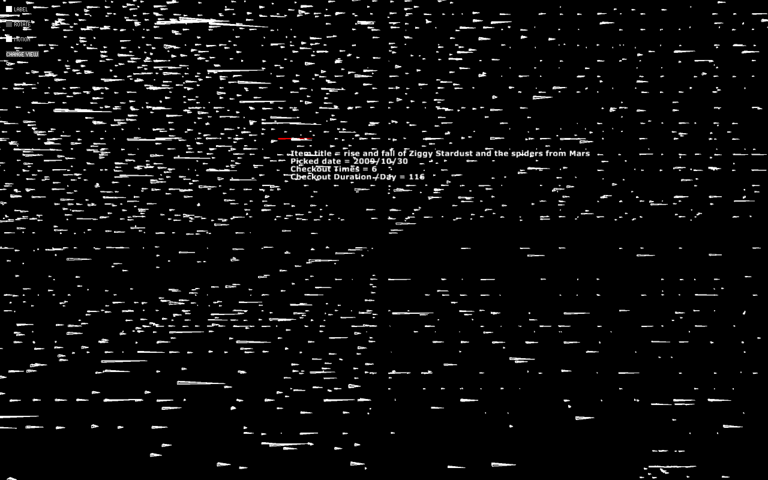 Similarly, I use lines to represent items. So the value in each arrow is representing the total checkout times of the item, the time axis representing each item's publish year.