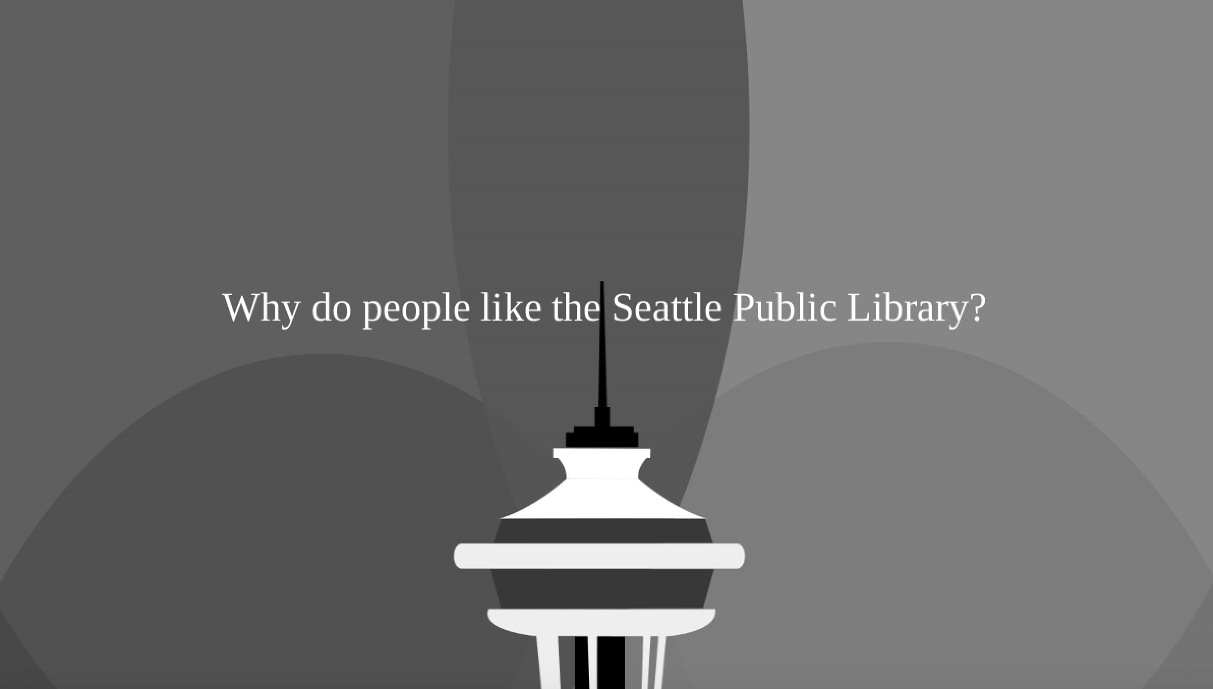 In this project, we try to answer the question of "What do people think of the Seattle Public Library? If we want to explore what do the people think, the first and naive thing that comes to mind is visiting the yelp website and reading the reviews. The more efficient solution is to compress the reviews into one visualization. The visualization will have text from the reviews and images the users took and uploaded themselves.