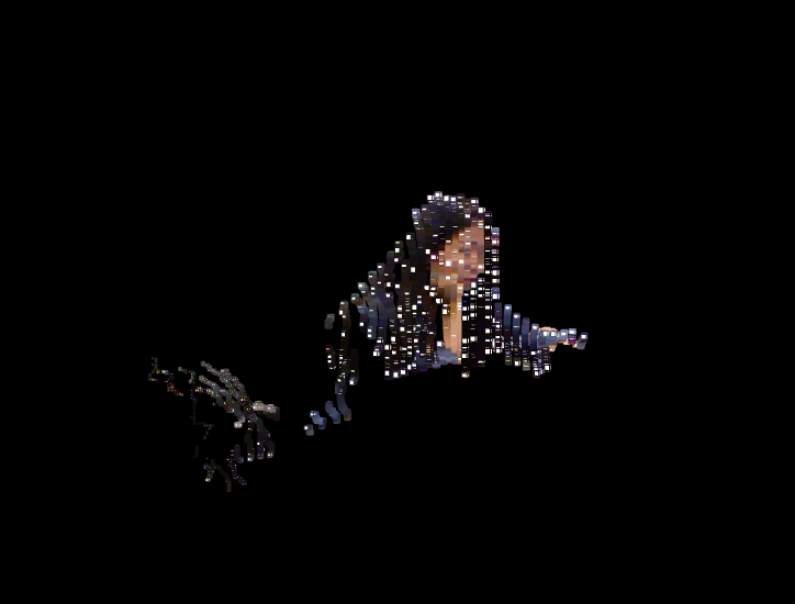 To achieve this, I have first split the artwork into small blocks, and vary the opacity of blocks , on the whole decreasing as the user approaches.