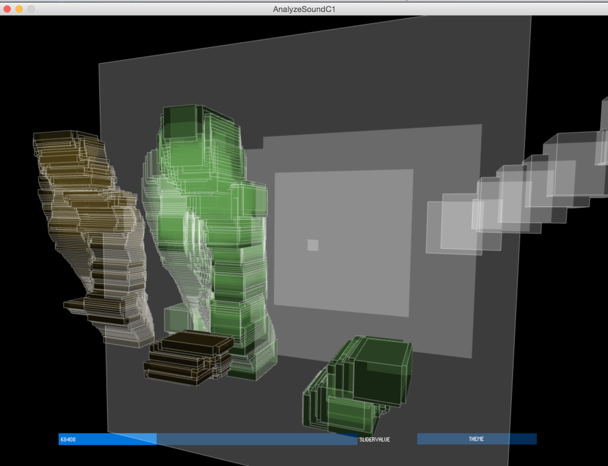 In this mode the person/ people in range will use either a microphone or some other acoustic sound input to produce sound that changes the 3D “cube cloud” of his or her/ their own image.