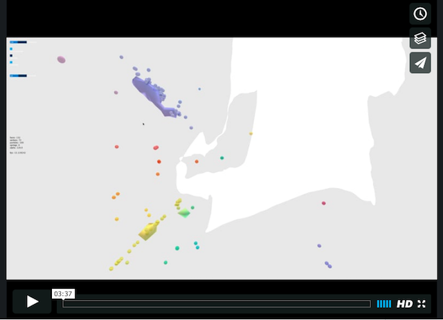 In my first plan, I used toxiclib, a physical library which can assign physical features to the objects in processing, to create a liquid 3D structure. To make the particles more like liquid, I covered the particles with mesh. The particles are able to respond to gravity and several attractions created by the gesture and the movement of the user. Also, there are repulsions among all the particles. Here are two screenshots of the demo: