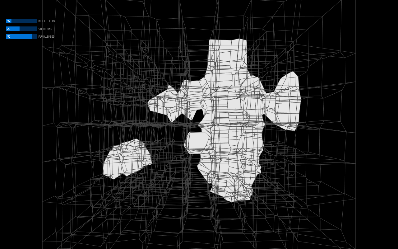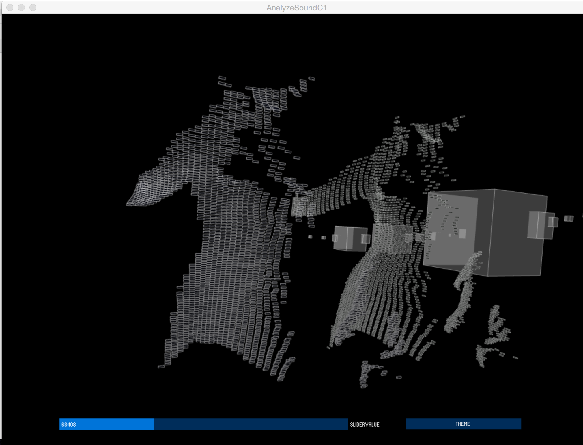 In this mode the person/ people in range will use either a microphone or some other acoustic sound input to produce sound that changes the 3D “cube cloud” of his or her/ their own image.