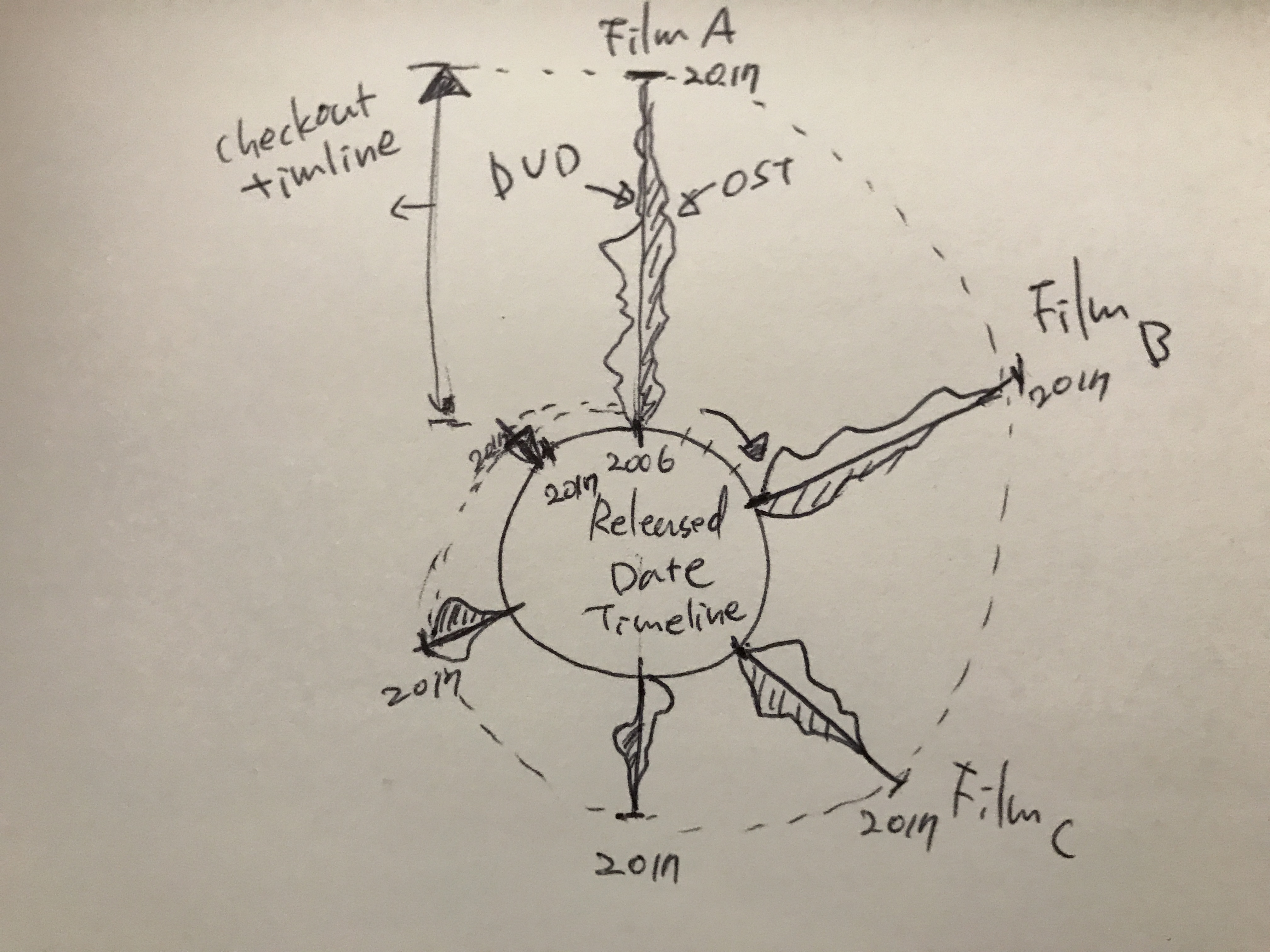 Finally, I think another indication of popularity of a certain move is how long people borrow them. To do this, I want to figure out how long people keep a particular movie during a particular month. It’s unclear how to do this in sql, so I just grabbed all the borrowing record from the dataset, and then save the result to a .csv file, and then use python to compute the average time people borrowing the movie. The query part for this is easy: