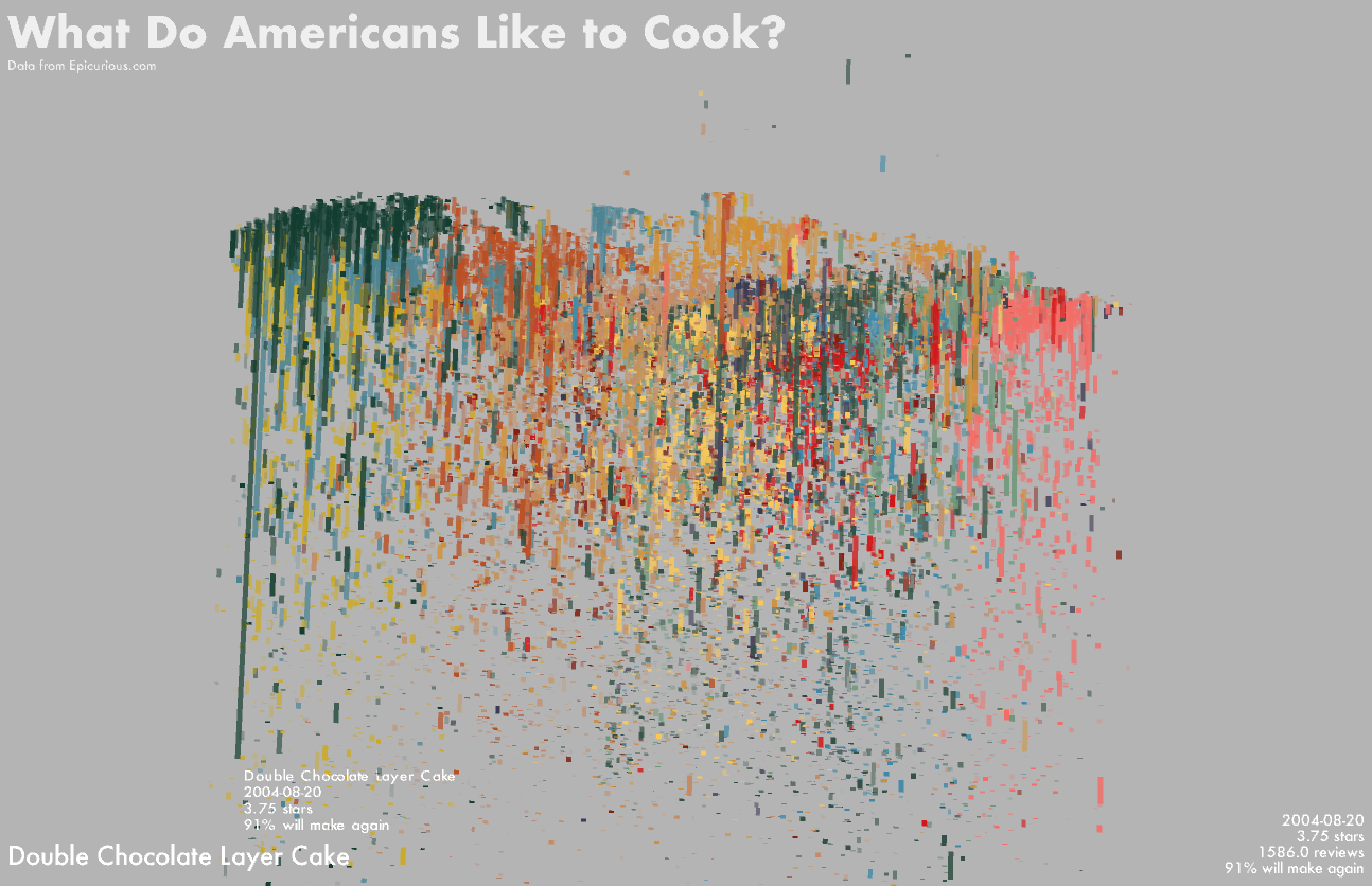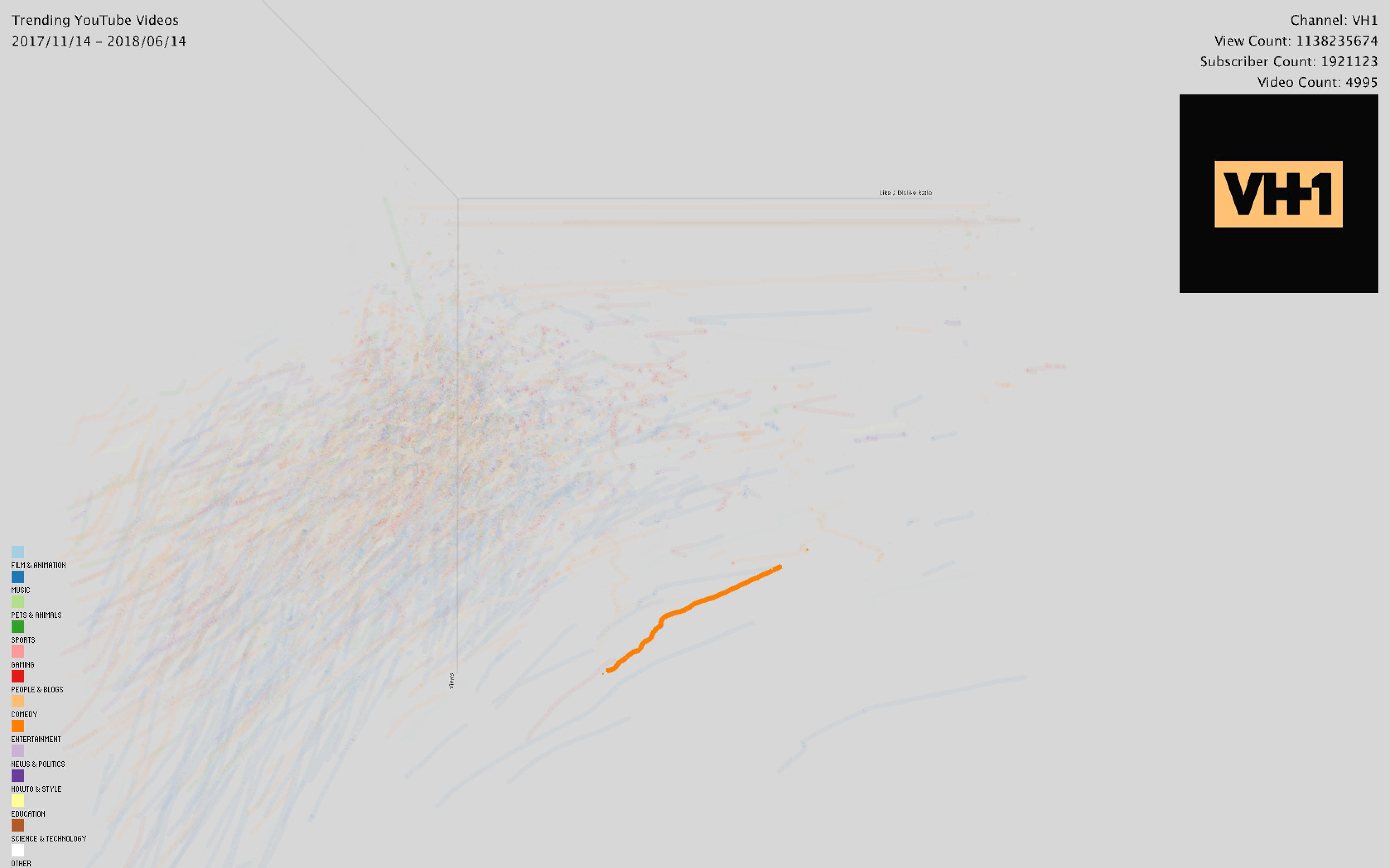 We are looking to see granular detail – meaning there should be a significant density of data to be visualized in 3D space. Each data’s x,y,z position should be directly defined by the data’s values.