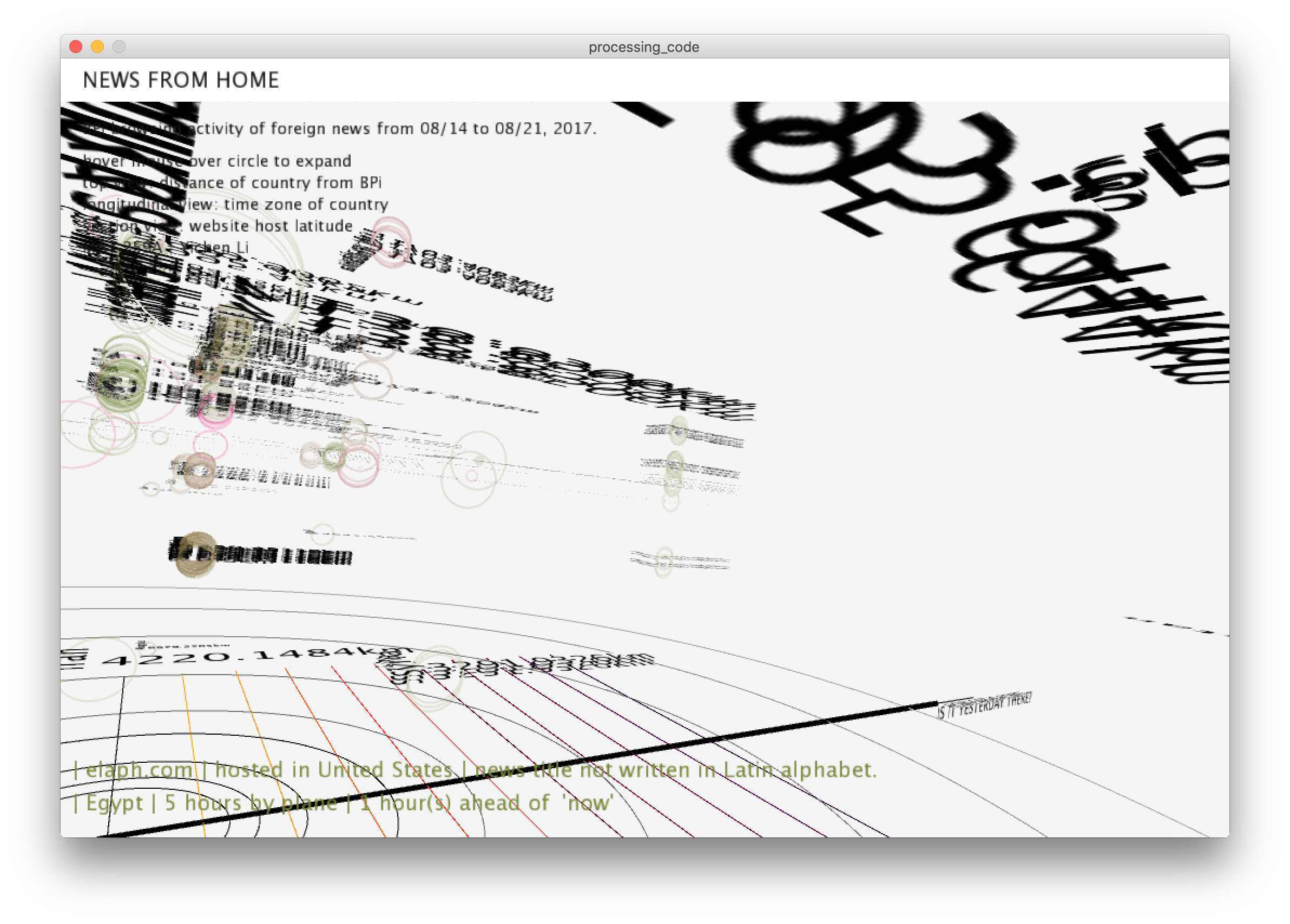 Your first task is to identify and select your data. This can be a continuation of the Seattle library data, or acquisition of data from other sources. Data can also be correlated between multiple sources. Visualization software to be used is Processing.