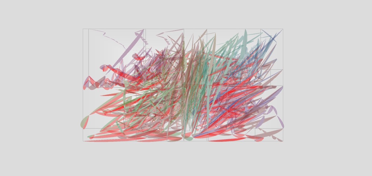 Due to the volume of data, it was impossible to visualize entities within one iteration, therefore, I randomly initiate a starting point and sample from the dataset at specific interval (n=750) to enable animation. The "location" of a person on the axes remains fixed, so that when repetitive resampling of a record occurs, the point/line is added at exactly the same location, where the first one appeared.