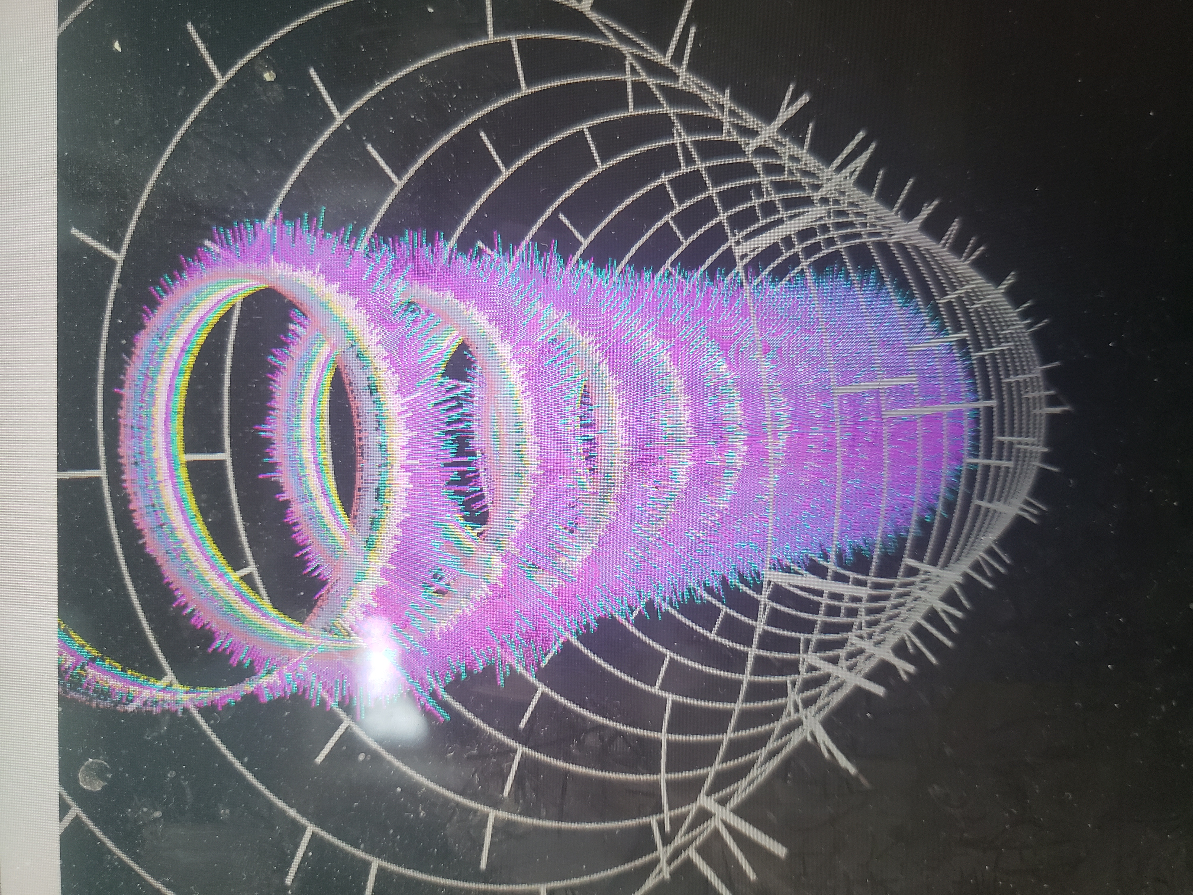 I've chosen to visualize the number of CD checkouts each day from January 2006 to February 2021 that correspond to 10 different music genres. I wanted the visualization to emulate the circular shape of CDs, so I chose to represent the time axis as an upward spiral (I may put an option to flatten the spirals into disjoint circles later, one for each year). The checkout data for each genre is represented by a bar of a certain color whose length along the radial direction is proportional to the number of checkouts. These radial lines were intended to look like the rainbow colors you see on the back of a CD, but they happily also look like the moving equalizer bars you see on some soundsystems. Either way, the data is meant to evoke the imagery of listening to music.