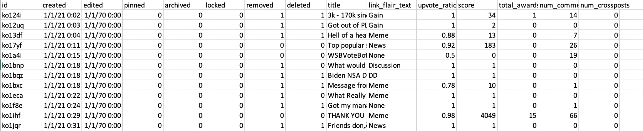For social media data, I’m thinking about getting reddit data. Some of the important variables in the dataset: