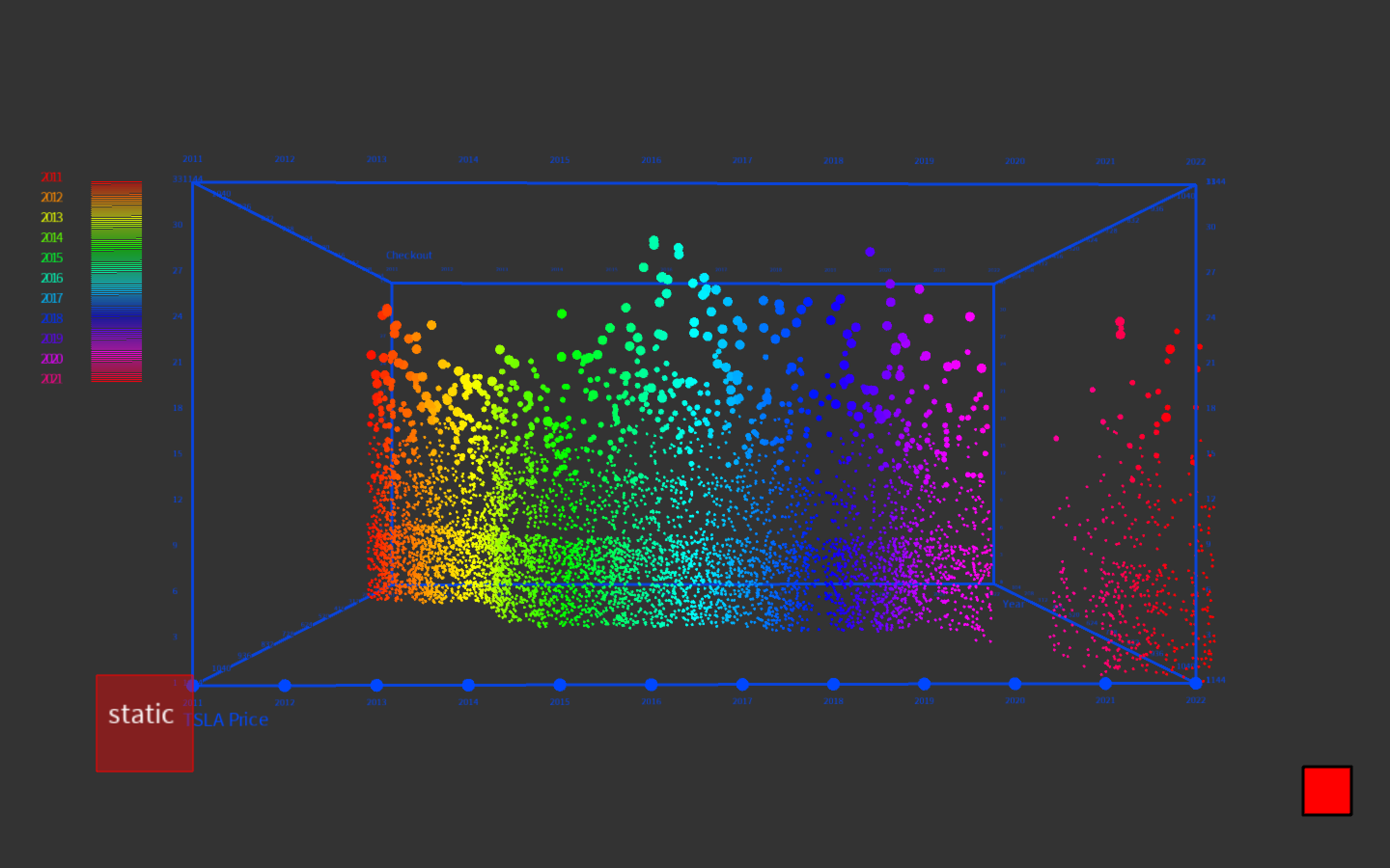 The 3D visualization project consists in visualizing downloaded MySQL multi-dimensional data within a 3D space using the Java-based Processing language: https://processing.org/