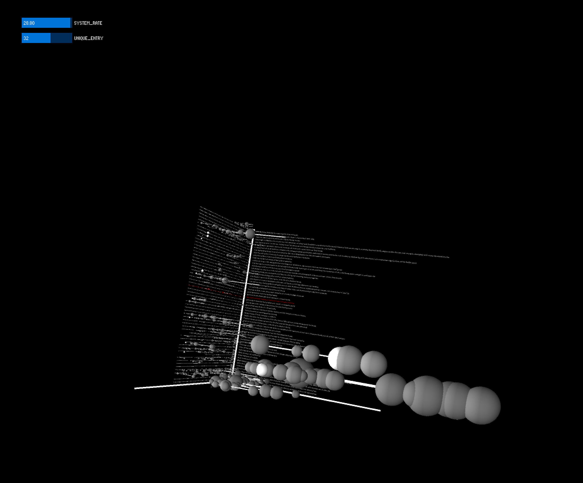 3) Data to determine the shape of the visual form: Let the metadata values determine where and how the data is to be organized within the 3D space, rather than to have a predetermined form