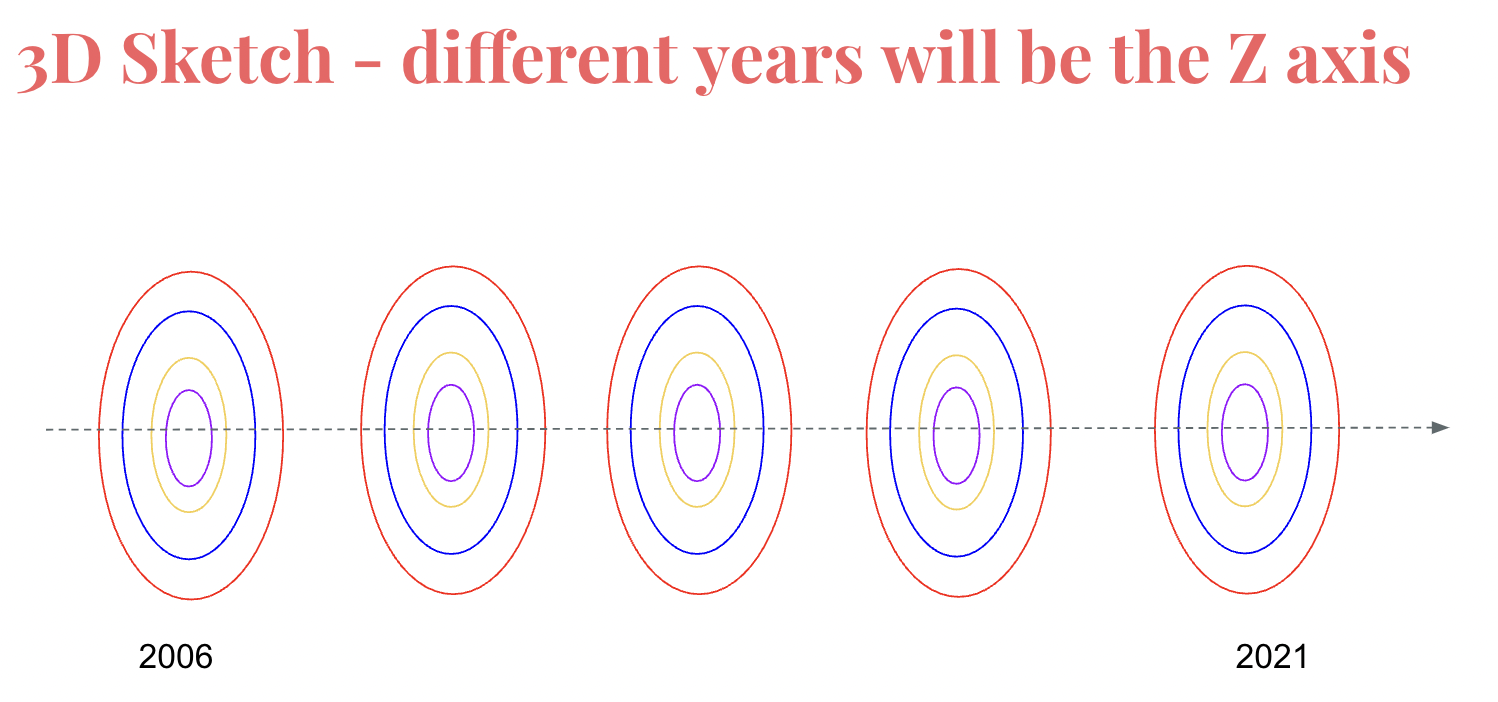 Firstly, I chose China, India, Japan, Korea and Vietnam as five research countries. And then I designed two SQL queries to search the total check out counts of these five countries and the check out details (including related country, bibNumber, title, date and counts) from 2006 to 2021. After that, I made use of Processing to visualize the multi dimensional data in 3D format.