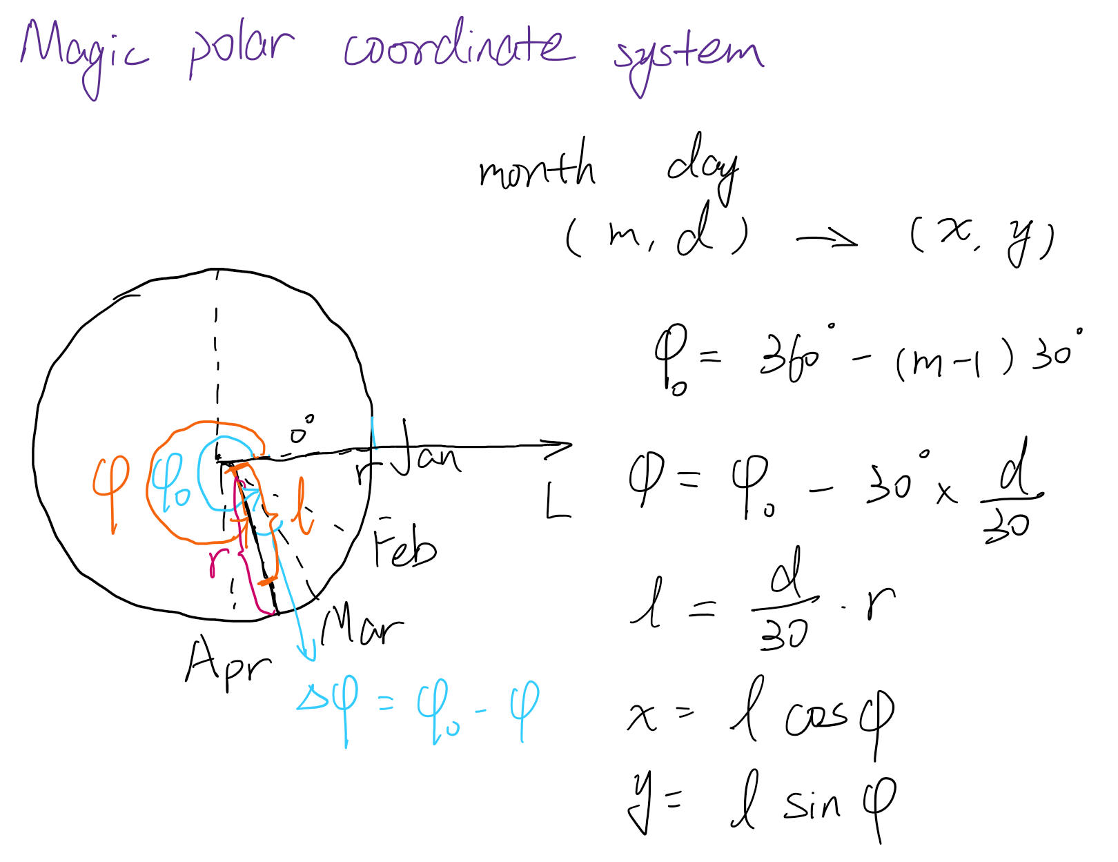 As you can see, besides the five circles, the specific book points also construct five book circles bigger than the original five country circles. Because I calculate the coordinates of every book point based on the book country attribute and the radius of the corresponding country circle. These book circles also have the same features with the country circles.