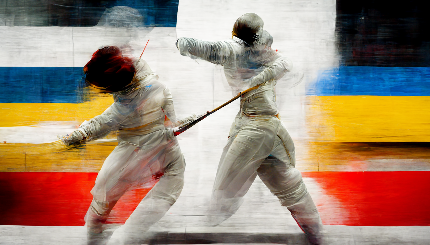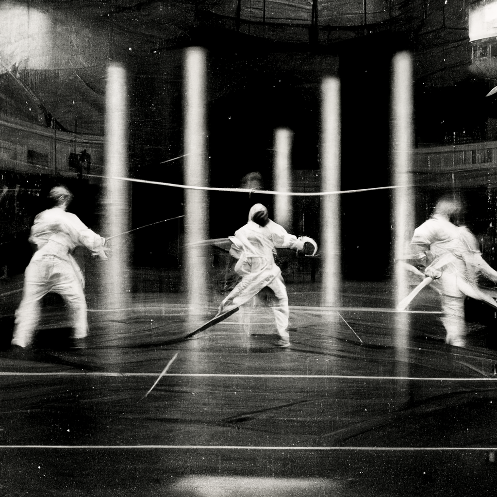 Prompt: chronophotograph, stroboscopic, fencing, sports, multi-expos