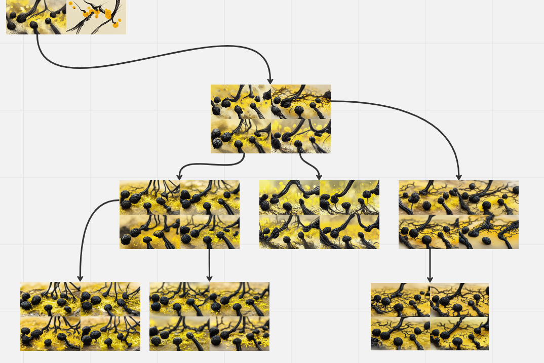 Tiny evolution trees on two variations of the above image: