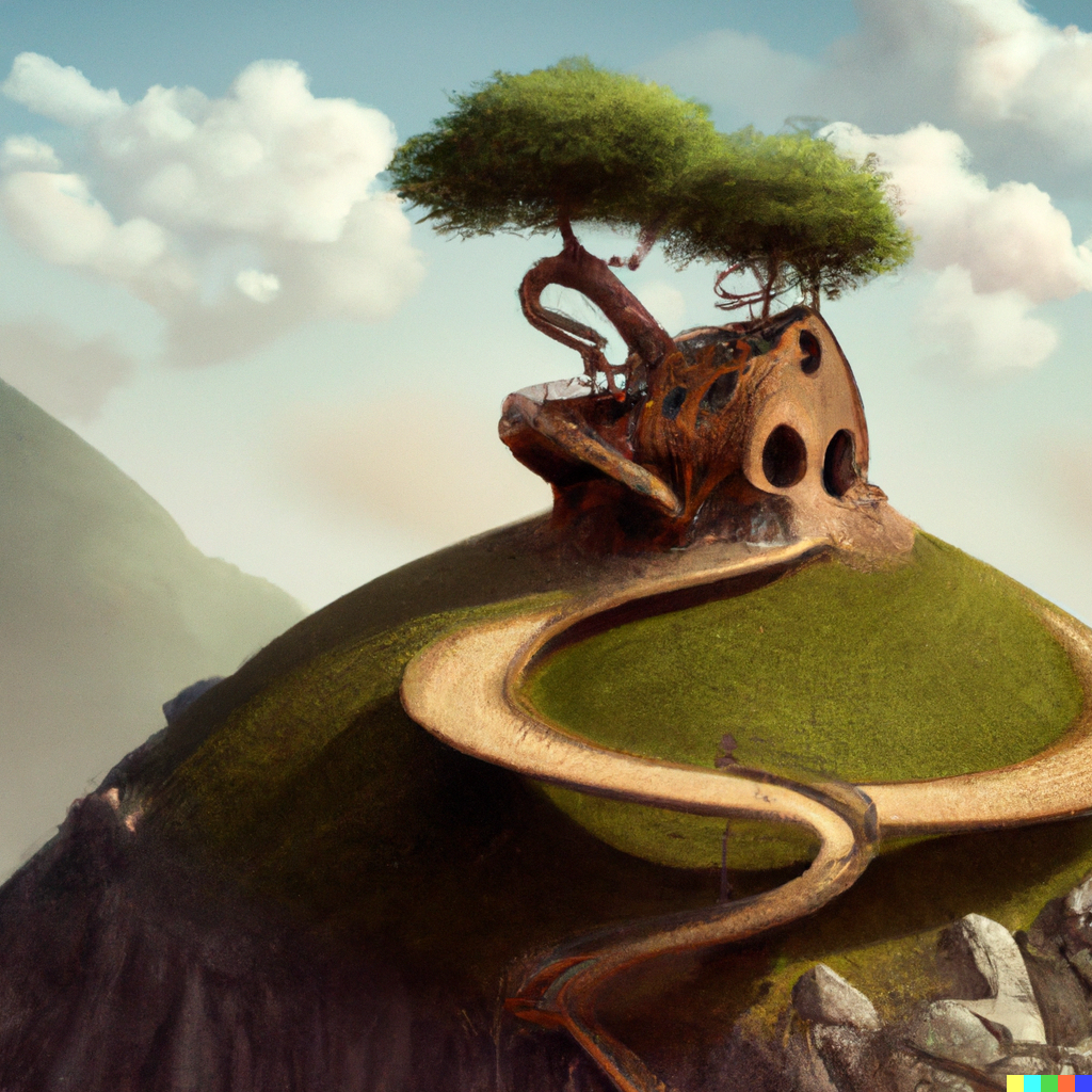 However, one element that surprises in the final generation is "the crooked path leading towards it". If you take a look at my previous generations with MidJourney and Stable Diffusion, you would find that the "crooked path" is always not very well represented in the images. However, with DALLE-2, I found the "crooked path" very well naturally incorporated in the image.