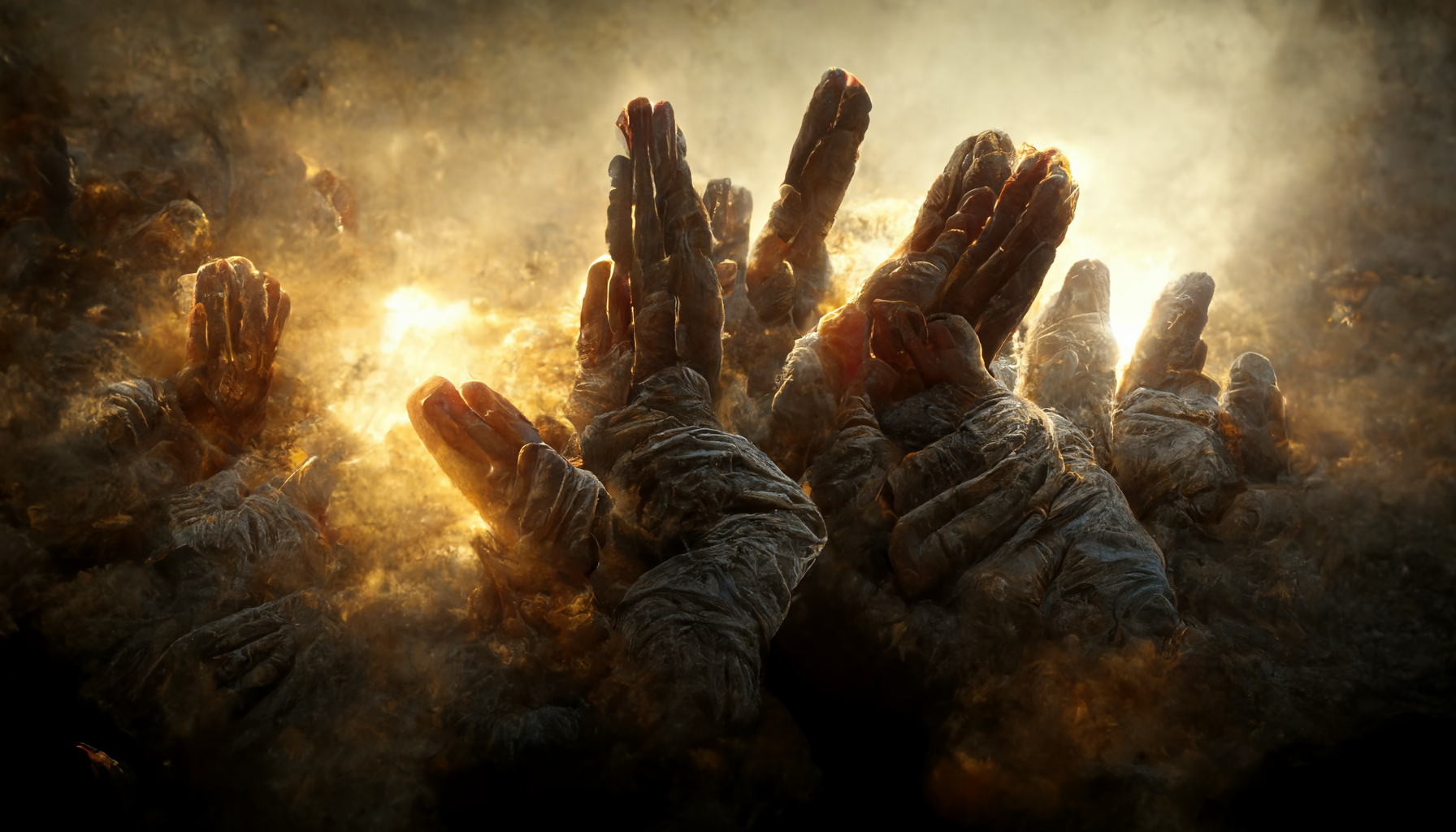 I typed in “first person shooter in a church”. I was given cavernous halls full of altars and priest soldiers, crumpled crosses covering walls, golden light thrown across the scene. I was elated. This is a cultural stereotype that resonates, not sure why, keep going. I typed in “angels playing counter strike in a church; first person shooter”. The machine filled the scene with distorted, winged 3d models covered in guns, helmets and limbs; pointing at each other, pointing at me. Frozen and running, covered in waterproof fabrics, wrinkled and muted, golden light everywhere. I iterated. I skated around this pocket of joined stereotypes, found its grooves, found its logic. I typed “angels playing counter strike in a church; first person shooter; hands first person”. Not sure why, but I do love hands. I also love the machine’s failure to understand hands. It simply saw a series of ‘n’ little stumps, curled around objects, folded into each other. The machine gave me more angels covered in guns, crosses, and limbs. But our angels began to hug each other, each angel a stump. They came in pairs of three fours and fives. They lost their faces, they lost their helmets; just clothed stumps, each becoming a finger. The fabric began to fall away from the stumped angels and replaced with bark and I was left with twisted sticks covered in dirt sitting in sunlight. Angels, soldiers, fingers, twigs--they’re all a part of the same continuum. The machine gave me the ability to see that. I feel good, the output looks good, enough for me to continue the process. I stayed in this pocket until I was bored. I don’t go on; I go about my day.