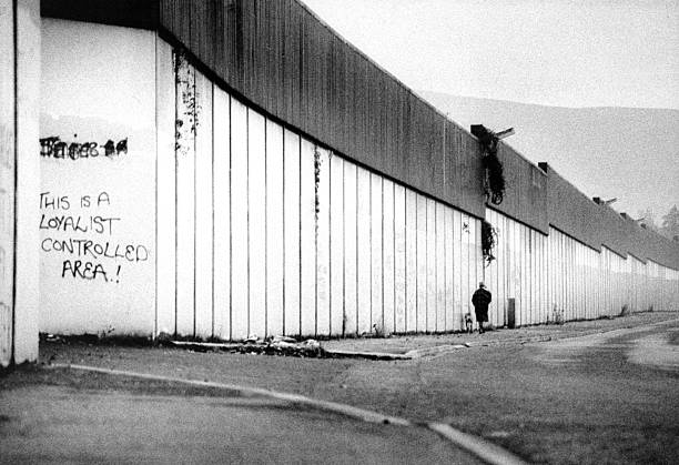 Alt Text: “View of a ‘peace wall’ built between Catholic and Protestant neighborhoods to prevent violence”