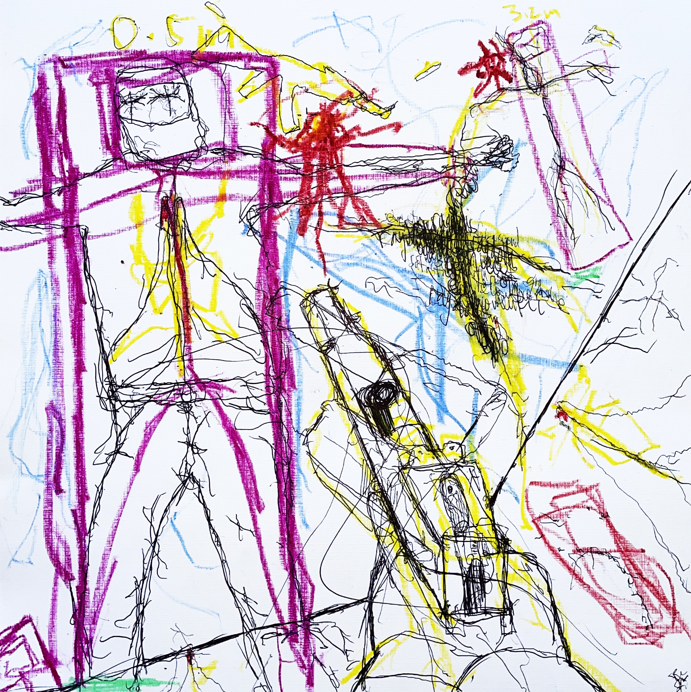 I’m back from my walk. This text2image machine showed me aspects of my life that I have left unattended for quite some time. After iterations of it’s general stew of cultural stereotypes it led me to the specific, the personal. Those previous resonances brought on by the machine’s output brought to the foreground aspects of myself I would like to think about more, to deal with on my own. The machine told me to stop typing, it told me to go on without it. I listened. I began to draw.