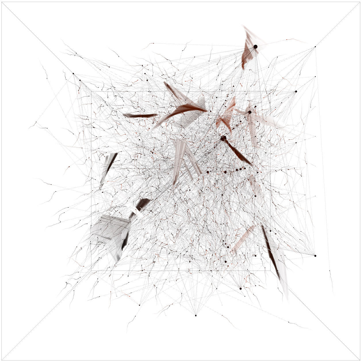 The data should be relevant and granular, meaning that there should be a significant density of data to be visualized in 3D space. Each data’s x,y,z position should be directly defined by the data’s values. Preference is for the data to determine the visual form, rather than matching data to an existing form, for instance, a geographic map has a pre-determined visual/spatial organization.