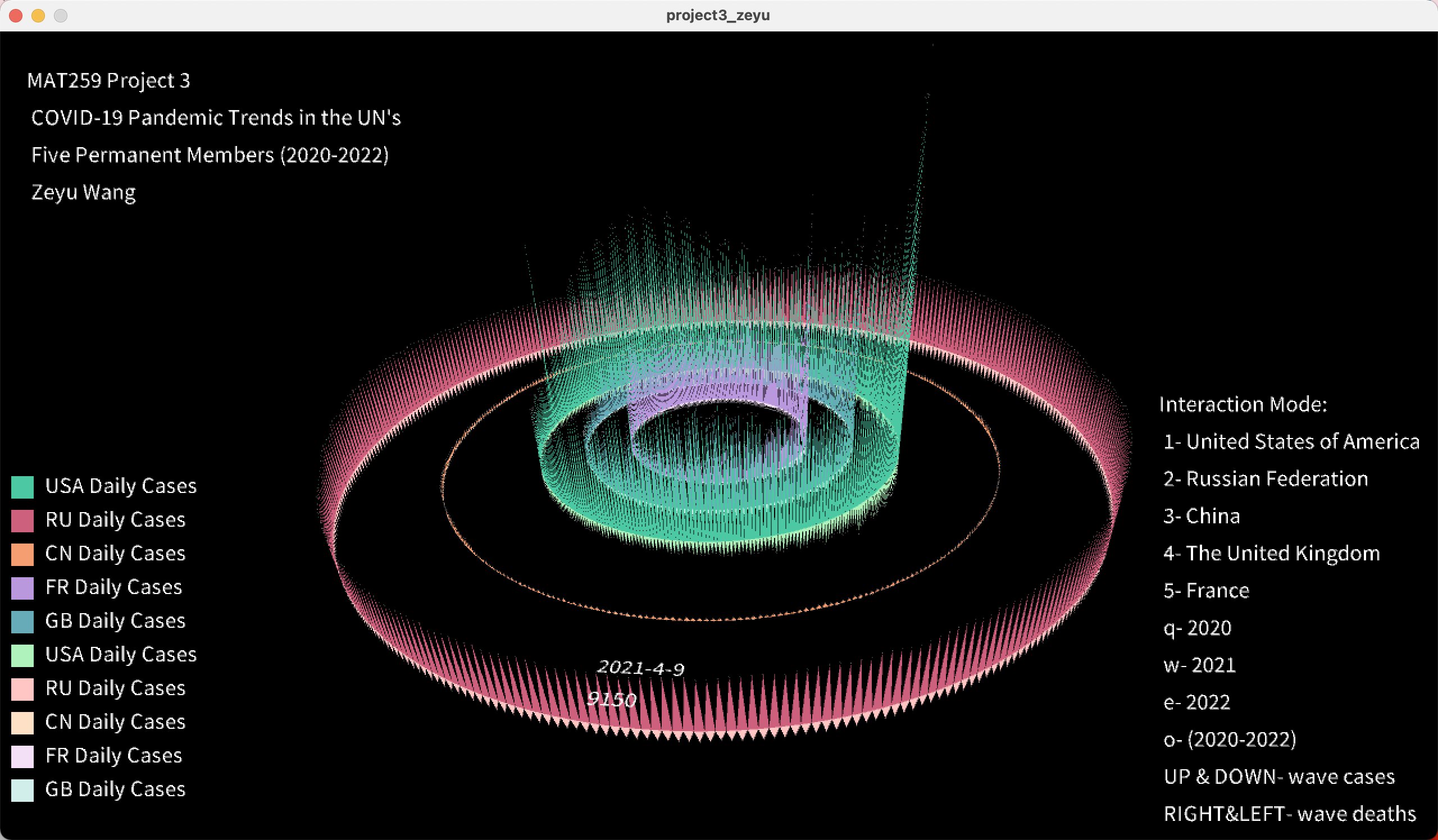 My idea is to create a data visualization of COVID-19 cases and deaths in the past three years for the five permanent members of the United Nations: UK, Russia, France, USA, and China. The visualization aims to compare and contrast the different government strategies implemented in each country and how they have affected the development of the pandemic. I have already completed the data preprocessing and have a clear sketch of how the data will be presented. Initially, my focus will be on creating the visualization, but I may explore the correlation between vaccination rates and COVID-19 deaths if time allows.