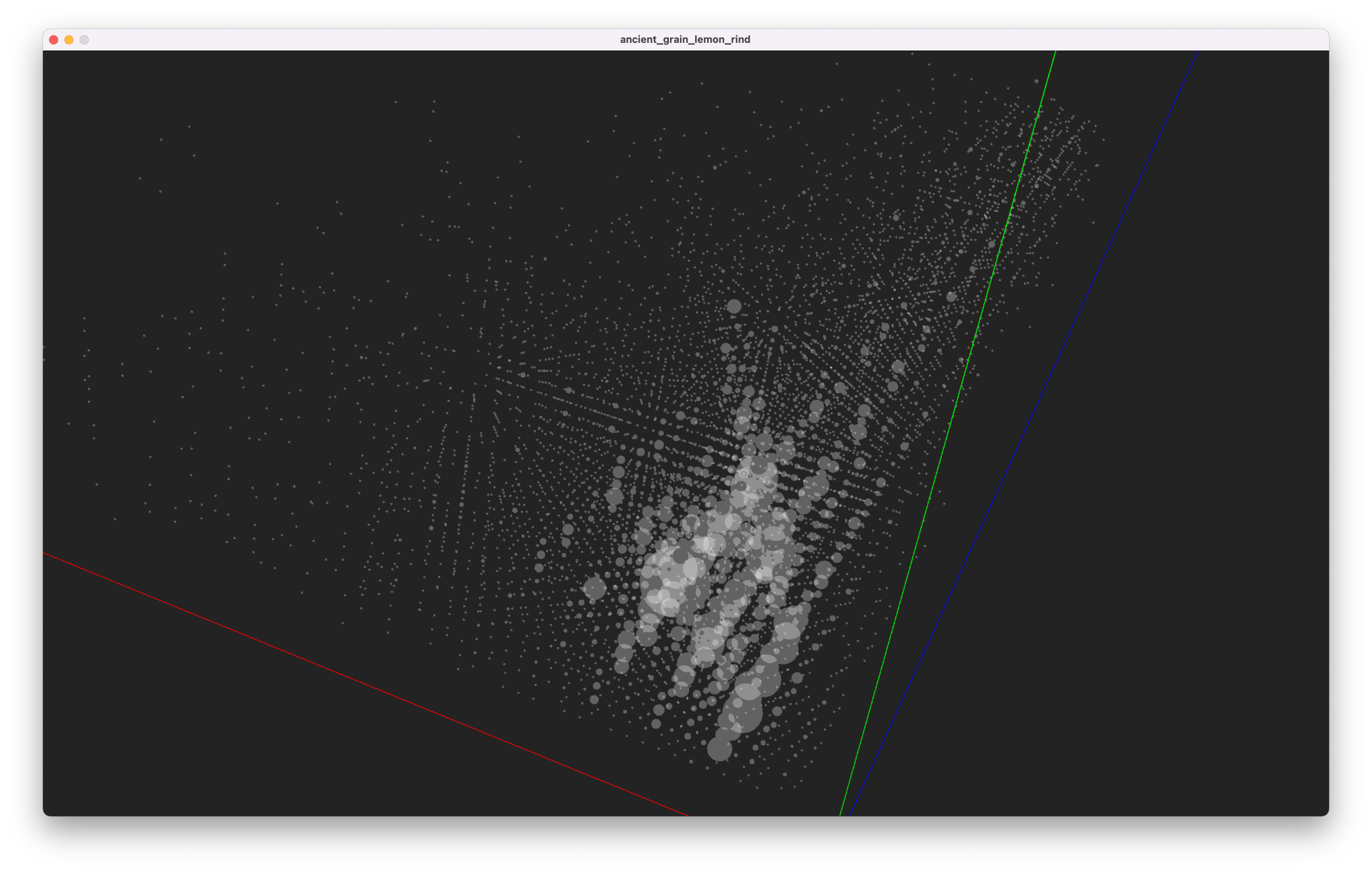 The data should be relevant and granular, meaning that there should be a significant density of data to be visualized in 3D space. Each data’s x,y,z position should be directly defined by the data’s values. Preference is for the data to determine the visual form, rather than matching data to an existing form, for instance, a geographic map has a pre-determined visual/spatial organization.