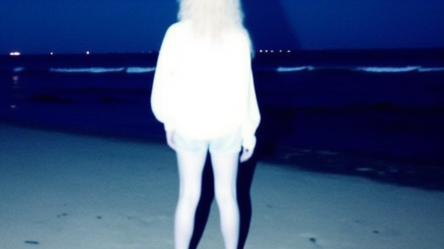 I wanted to experiment with bright flash on a foreground subject. I ended up getting the effect I wanted, but the clothes were difficult to manipulate. I tried to add different weights to each image prompt, and I also tried to add text prompts, but I was unable to get my vision to work. The following images were still very interesting, with one notable element being the complete paleness of the subject. From pale skin to pale clothes, It's almost like these could be photographs of ghosts.