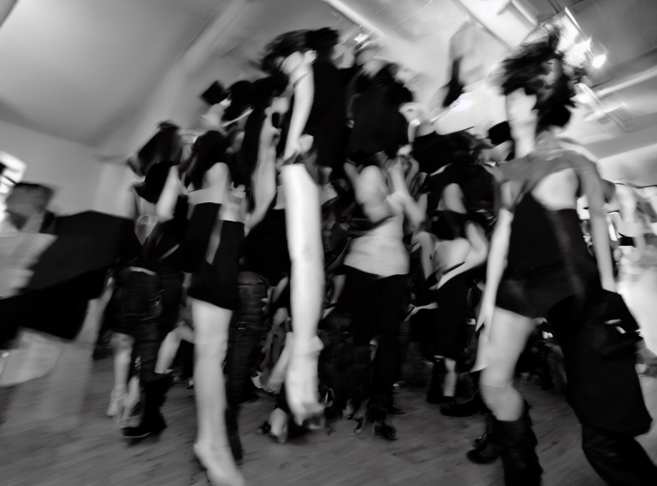 2010s tumblr bloghouse indie sleaze, 2013 instagram, intensely bright direct flash photography, model in foreground wearing rick owens balenciaga maison margiela, intense motion blur, fisheye perspective, crystal castles, colorized, empty room