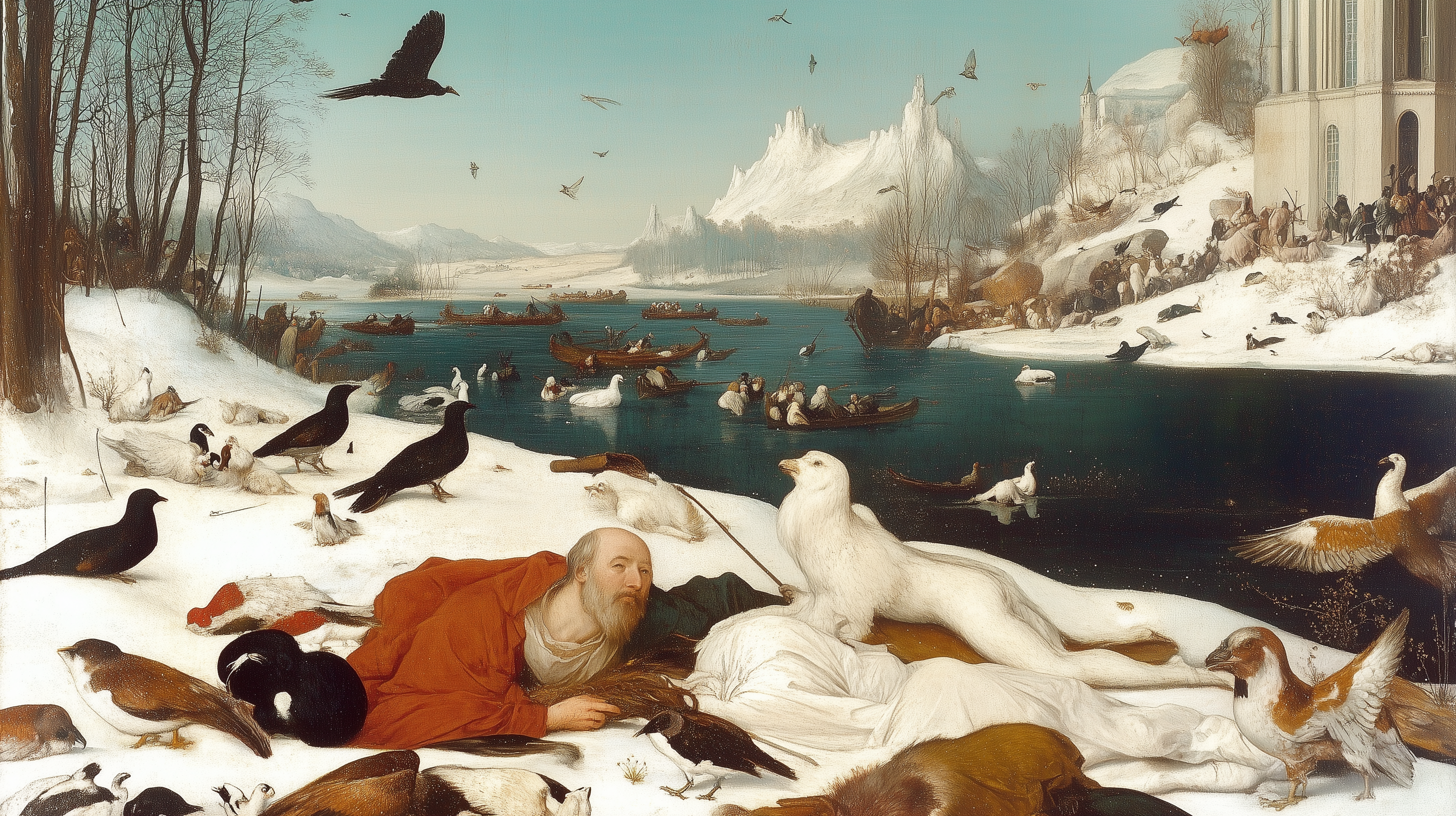 Prompt: bruegel hunters in the snow ::1 hieronymus bosch ::1 --chaos 50 --ar 16:9 --style raw --stylize 0 --weird 900 --v 6.1 1. To what degree does your text query influence the generated image?