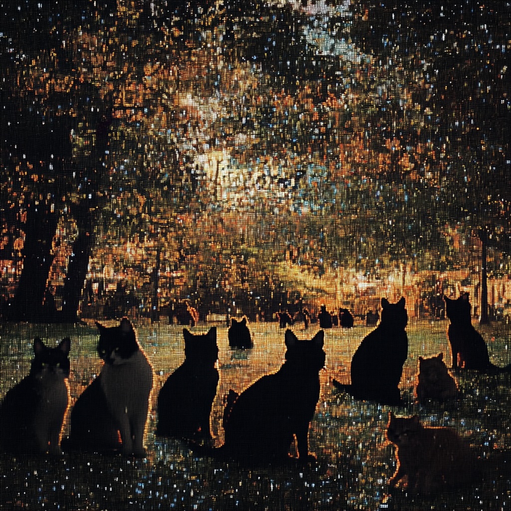 image 2: magnified big pixilated digital art of cats on reed college lawn during renn frayre midnight surprise --style raw --s 250